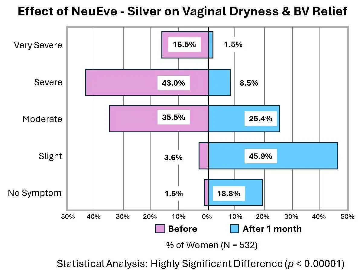 NeuEve Silver is a natural vaginal suppository developed by a gynecologist. NeuEve Silver naturally moisturizes feminine dryness, ease intimacy discomfort, clears odor. NeuEve Silver is made with vitamins and nutrients to nourish the vaginal tissues.
