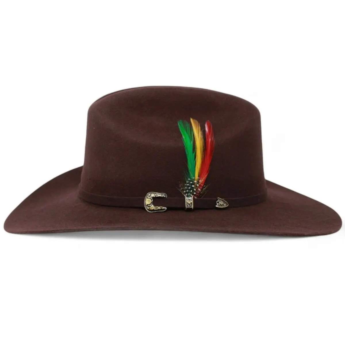 Texana Chocolate 20X con Plumas – Estilo Sinaloa (Chaparral) – Tombstone Hats