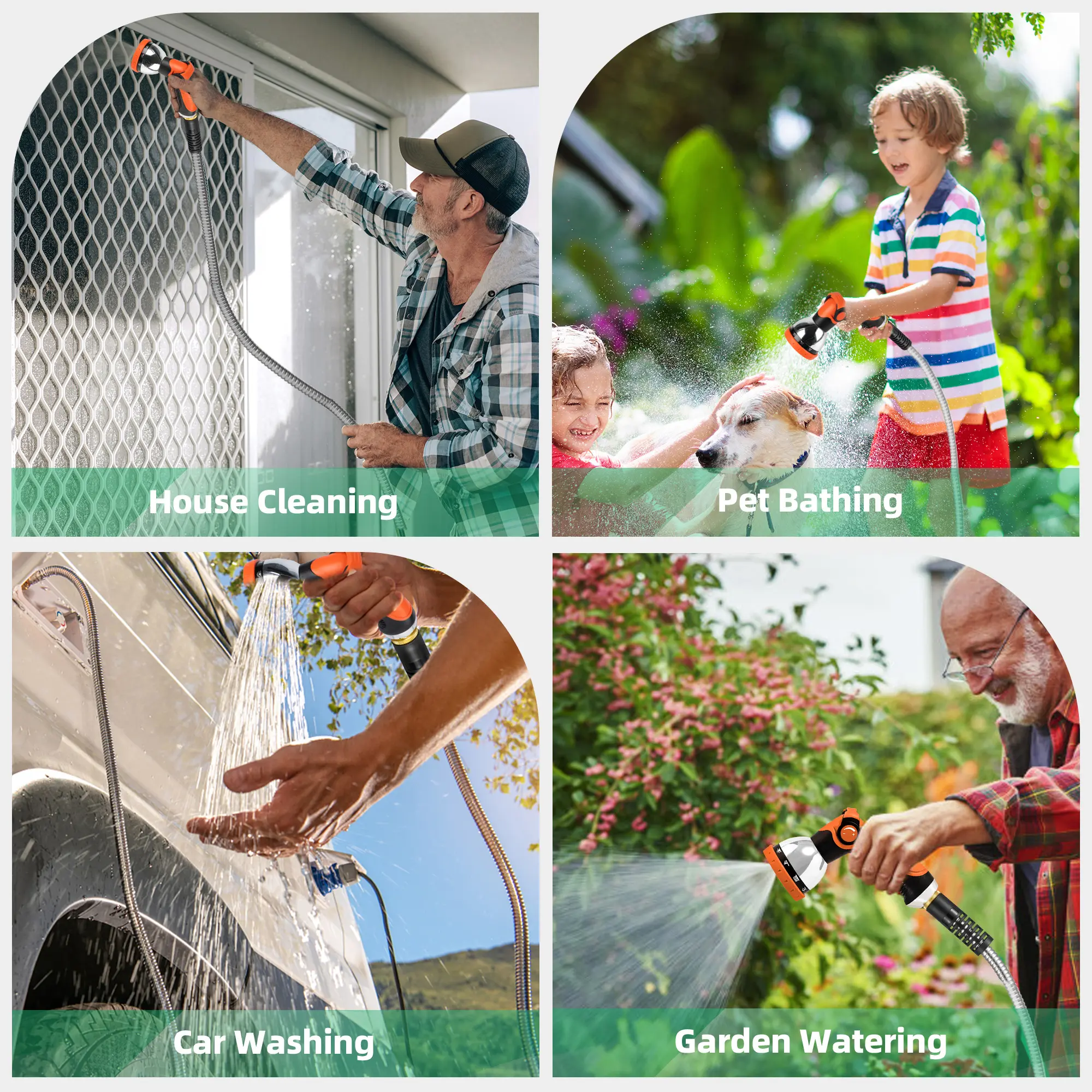 ·Durable Connector & Water Hose: No more leaks! The connectors are pressure tested to reduce water leakage effectively. Stainless steel wraps the thickened inner tube, making it wear-resistant, pet-proof, puncture-proof, and abrasion-resistant.