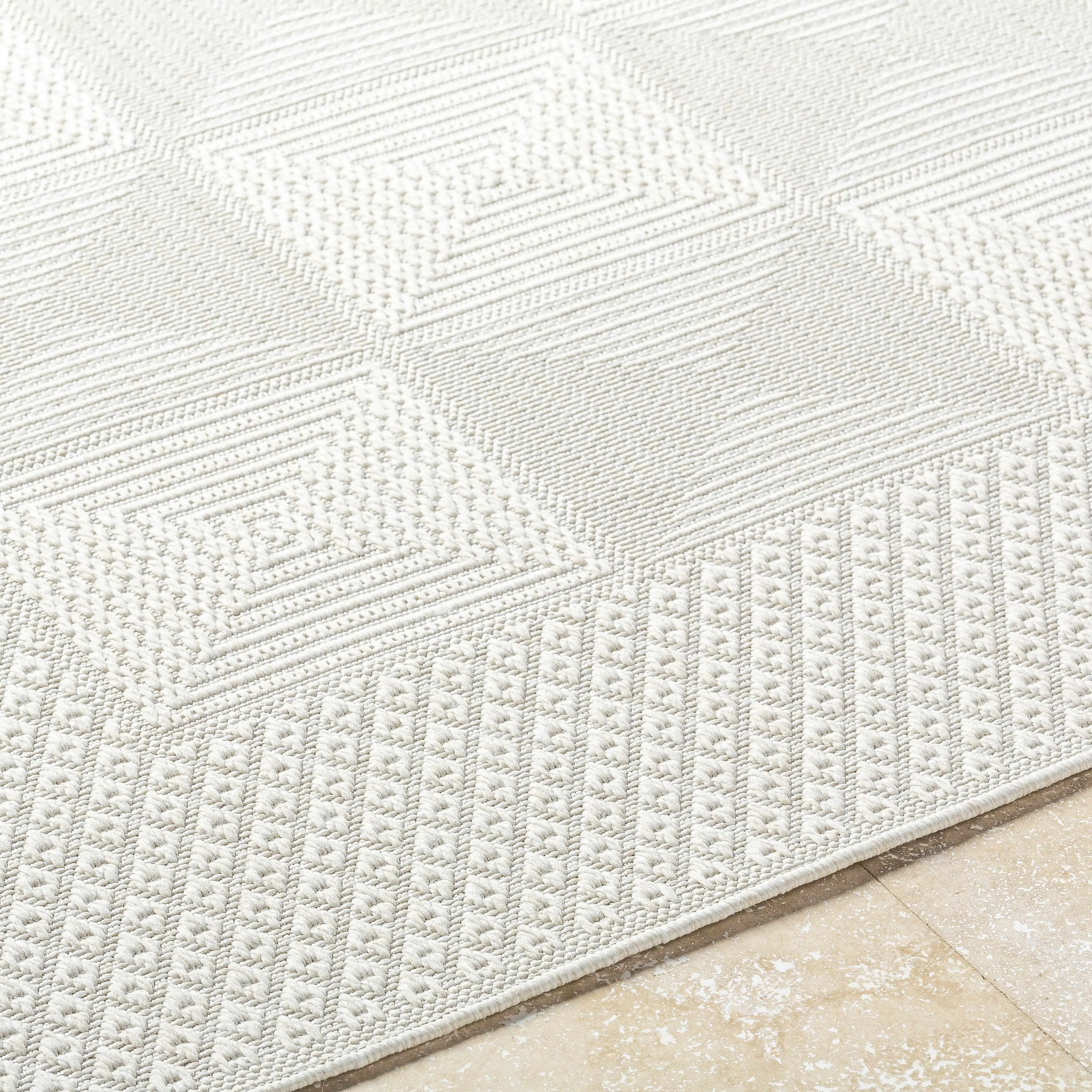 Introducing the Anabia White Area Rug collection area rug, a stunning addition that effortlessly enhances any space. Made in Turkey and machine woven from durable polypropylene, this rug is specifically designed for high traffic areas and is even safe for outdoor use. The no-pile construction ensures it stays looking fresh and vibrant, even after numerous footfalls. Plus, maintaining this rug couldn't be easier - simply hose off with water and hang to dry when needed. We recommend pairing this piece with a rug pad for optimal performance. This isn't just a rug, it's a statement piece that combines style with practicality.