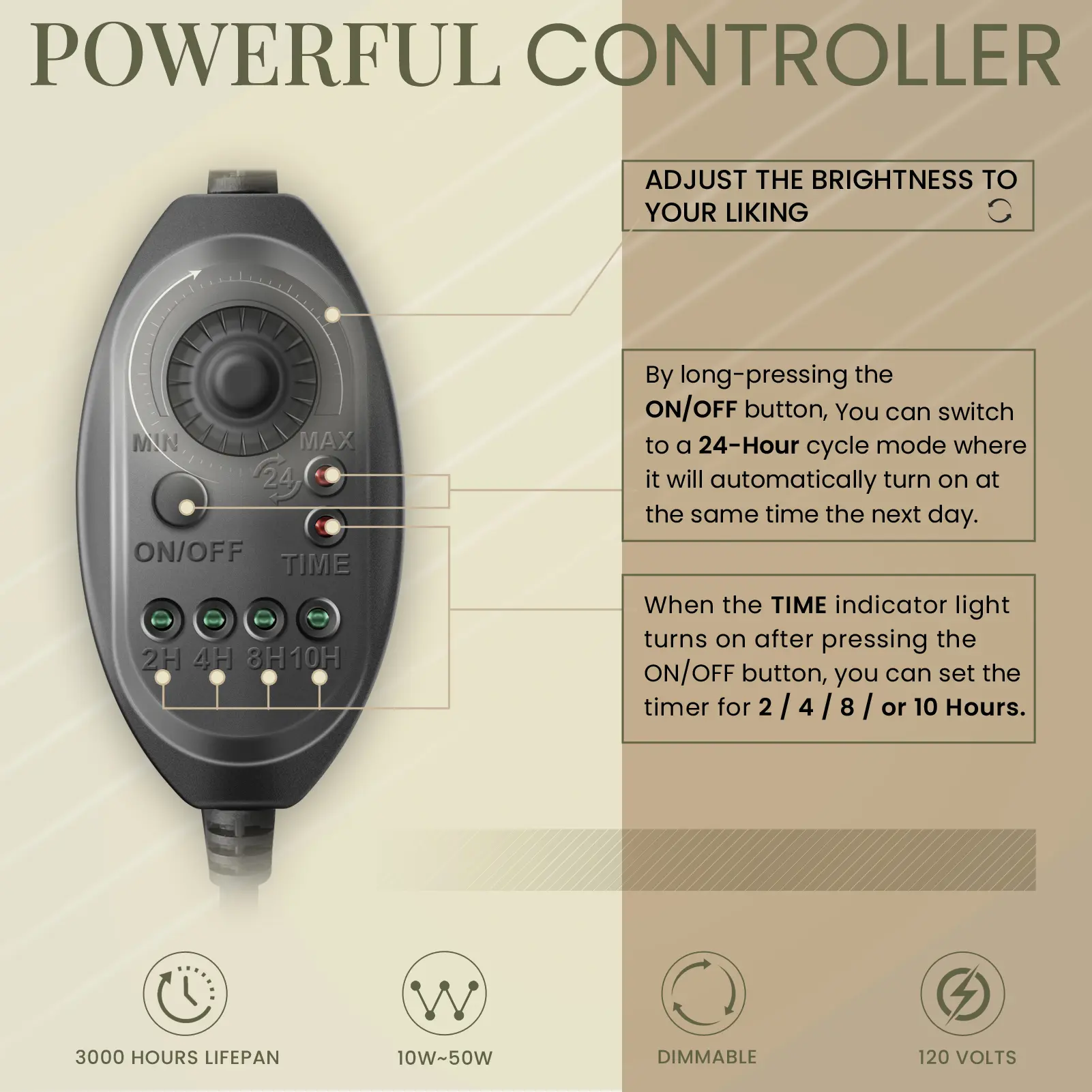 ·24-Hour Cycle Timer: Enjoy a continuous light source throughout the day, perfect for those who may not have access to electricity outside of daylight hours.