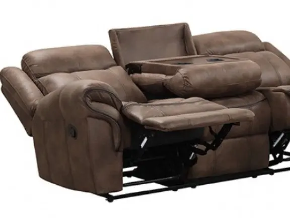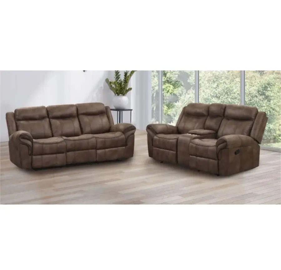 NX6001BR-2PC Agata Brown Leather-Like Fabric Sofa & Love Seat Set with Recliner Ends & Cup Console for Cozy Living Room Lounge