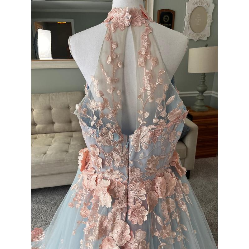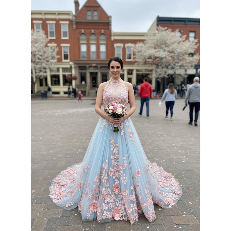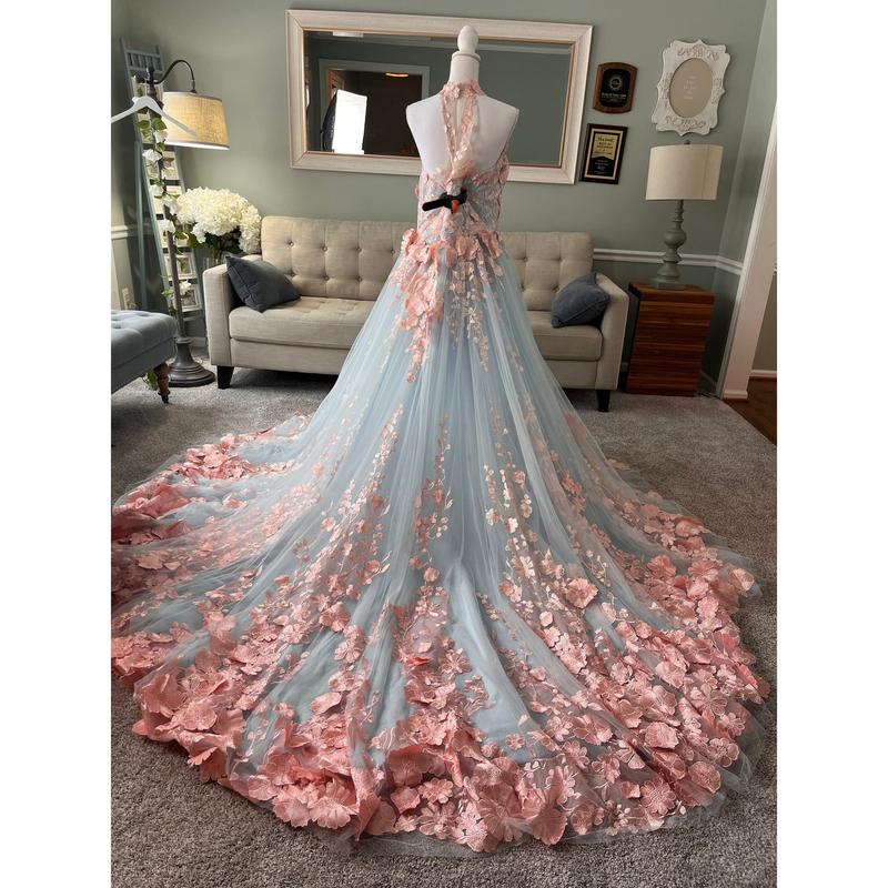 Katie Pink and Blue 3D Wedding dress, A-Line Wedding Dress with 3D flowers, Disney Wedding Dress Floral wedding dress, Custom Wedding Dress