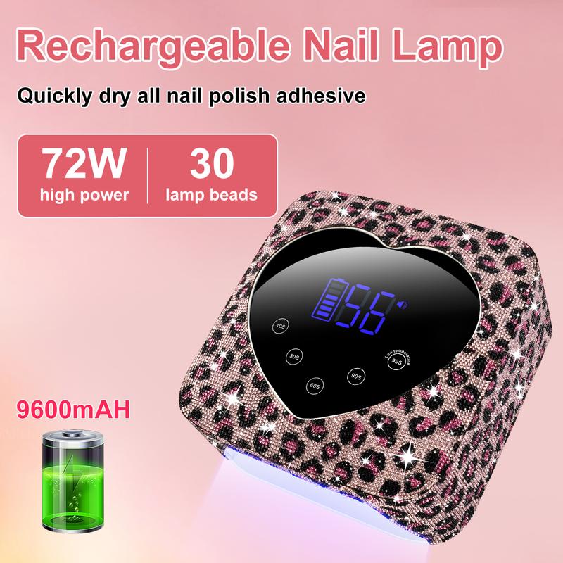 72W cordless rechargeable nail lamp UV LED nail lamp with 30 LED beads rechargeable nail gel dryer with 5 timing settings nail salon nail art nail care Manicure Cutics