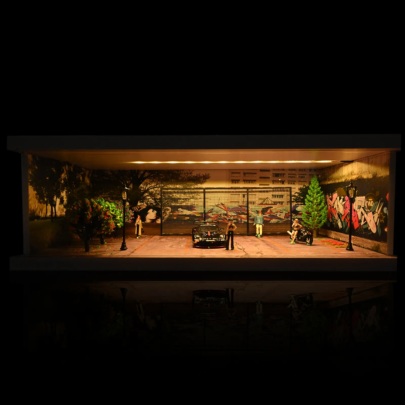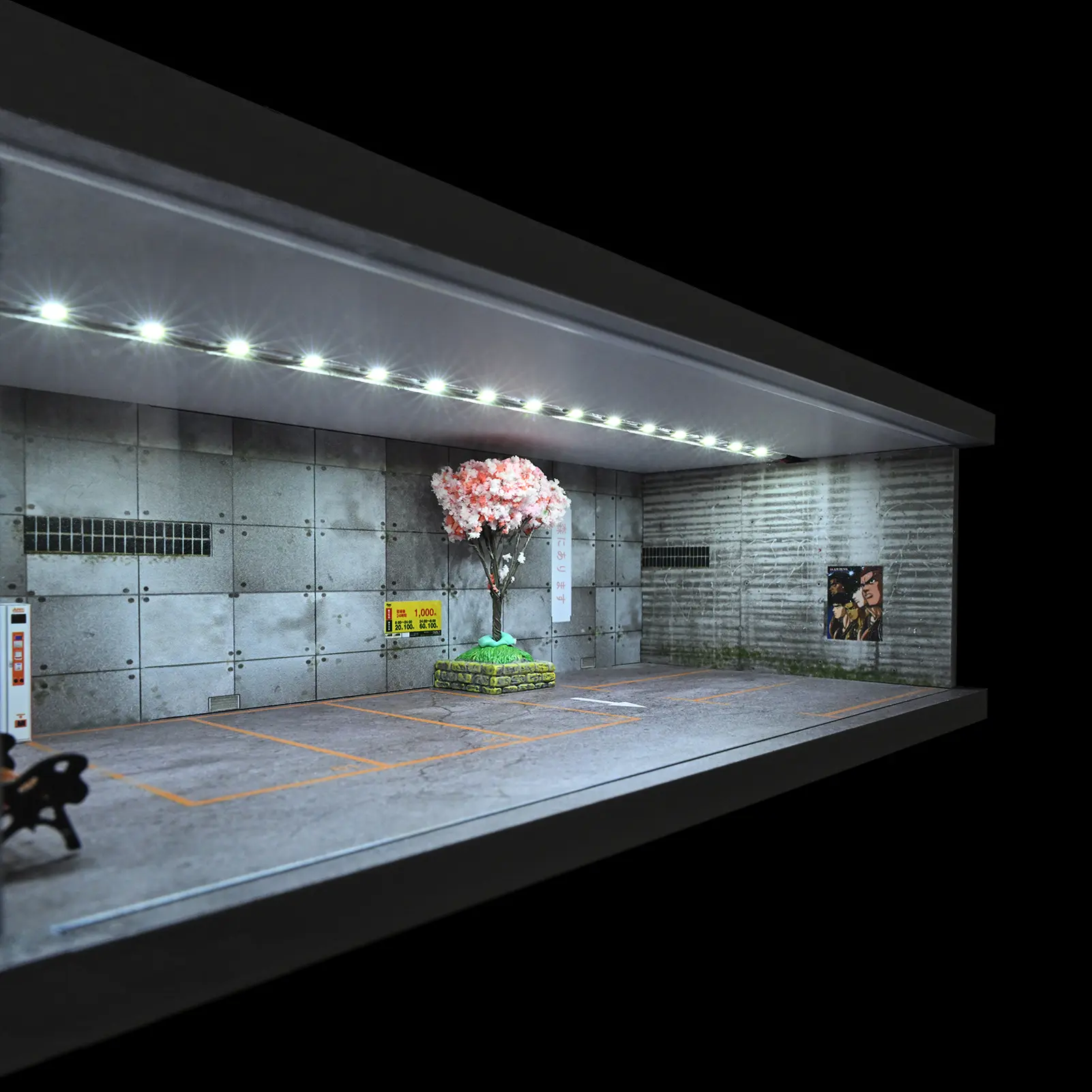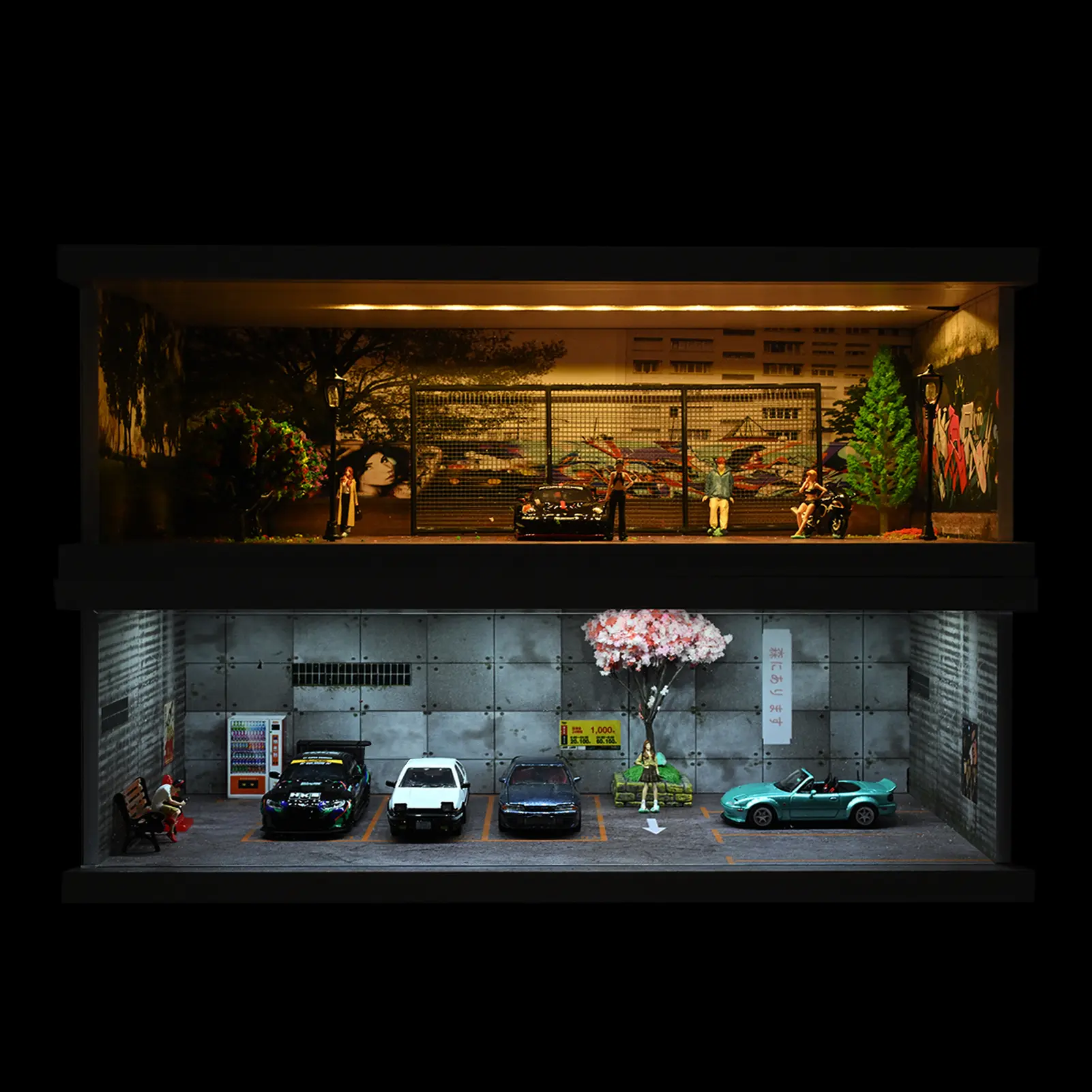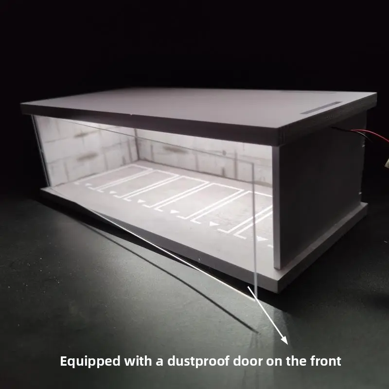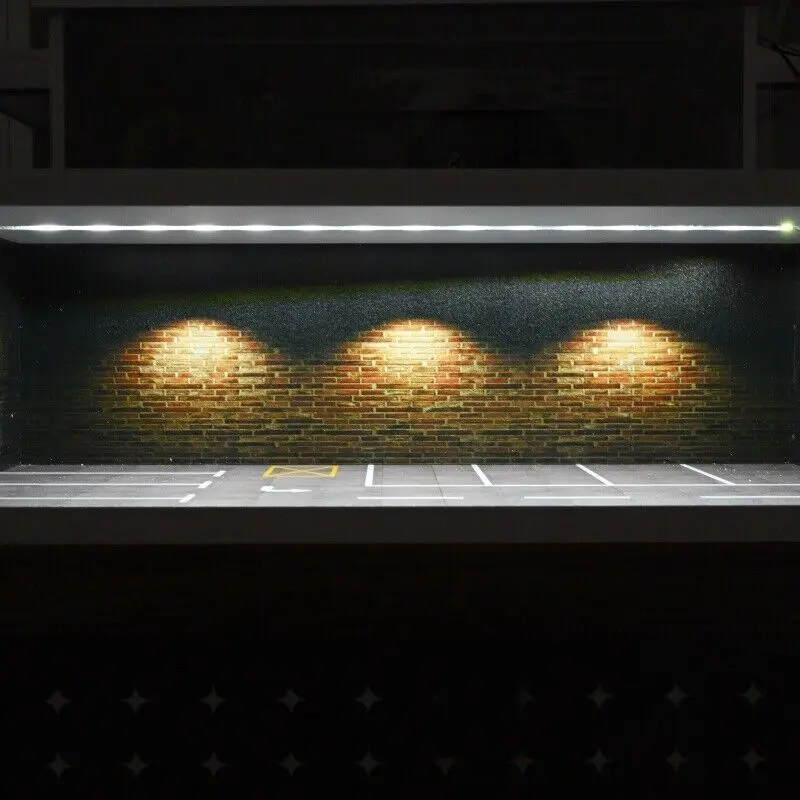 Diorama 1:64 Scale Car Garage Model With LED Lighting Fits For 1/64 Hot Wheels Diecast Model Car City Street Car Parking Lot Backdrop Display Model Collection Toy Gift with Acrylic Dust Door