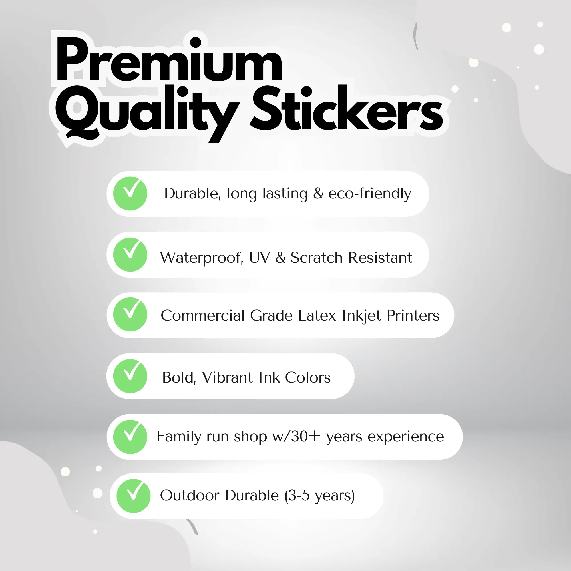 We set out to create premium transfer decals that don’t just stick—they stay. Backed by over 20 years of professional print experience, we’ve mastered the art of combining premium U.S.-made materials with cutting-edge print tech to produce stickers & decals that look bold, last long, and leave the cheap stuff in the dust.