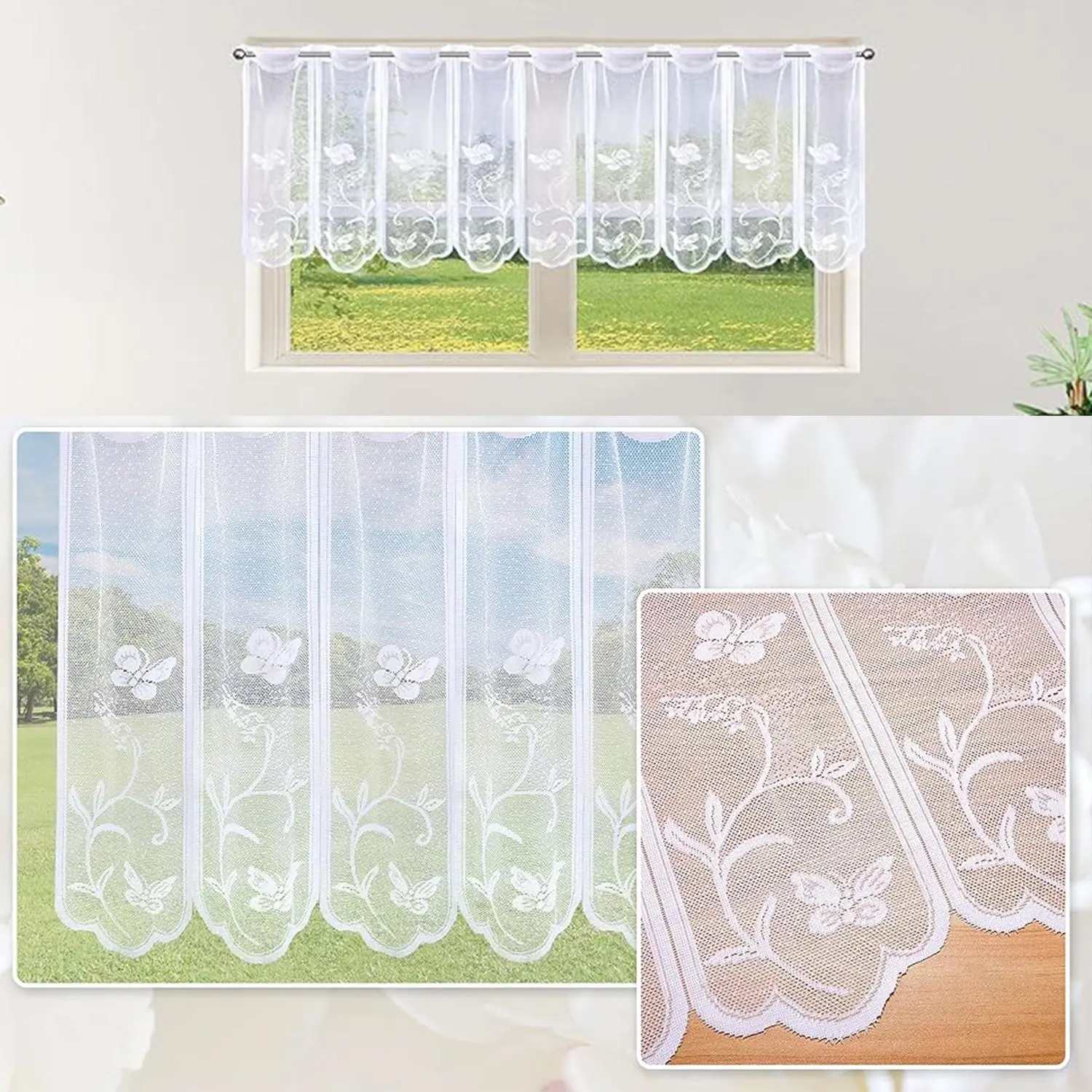 Butterfly & Flower Pattern Lace Curtain, Short Curtain, Window Curtain for Home Living Room Bedroom Kitchen, Home Decor, Net Curtains Window