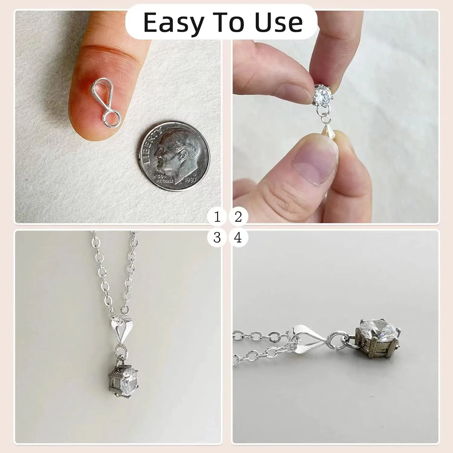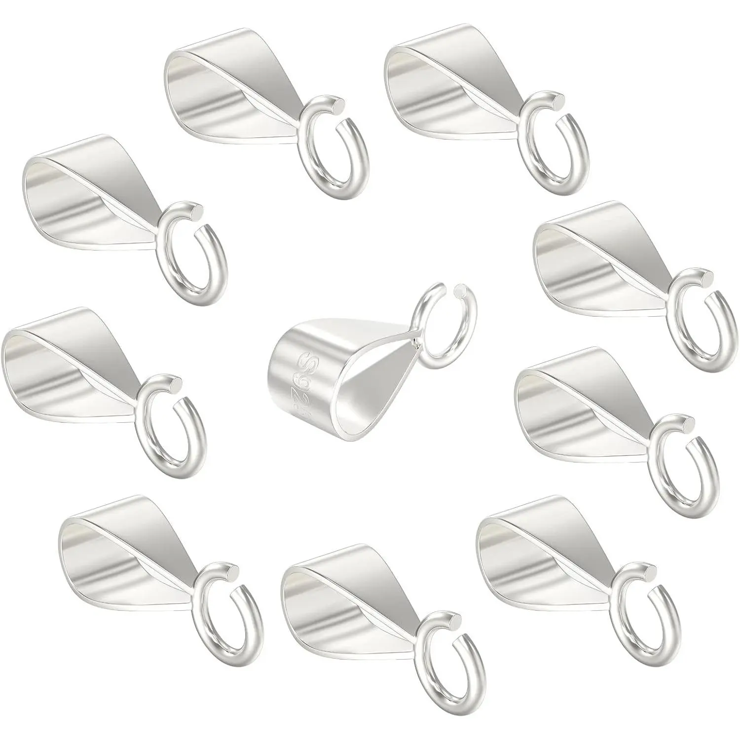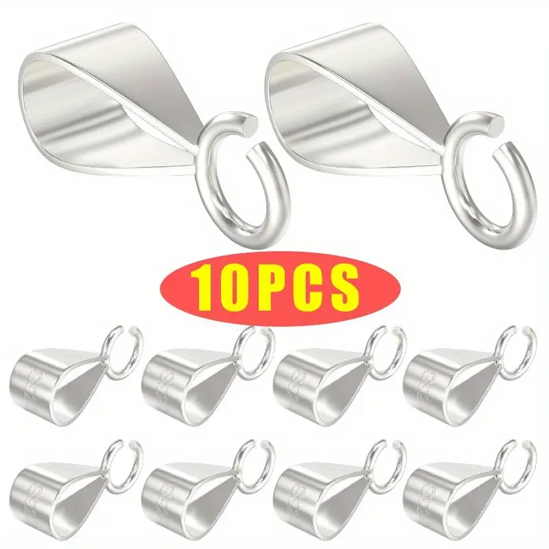 10Pcs/Set Silver Slider Pendant Clasp for Necklace with Open Loop,Easy Bails for Jewelry Making,Charm Clasp Connector for DIY Craft,Christmas Party Gifts,Hand Tools Kits