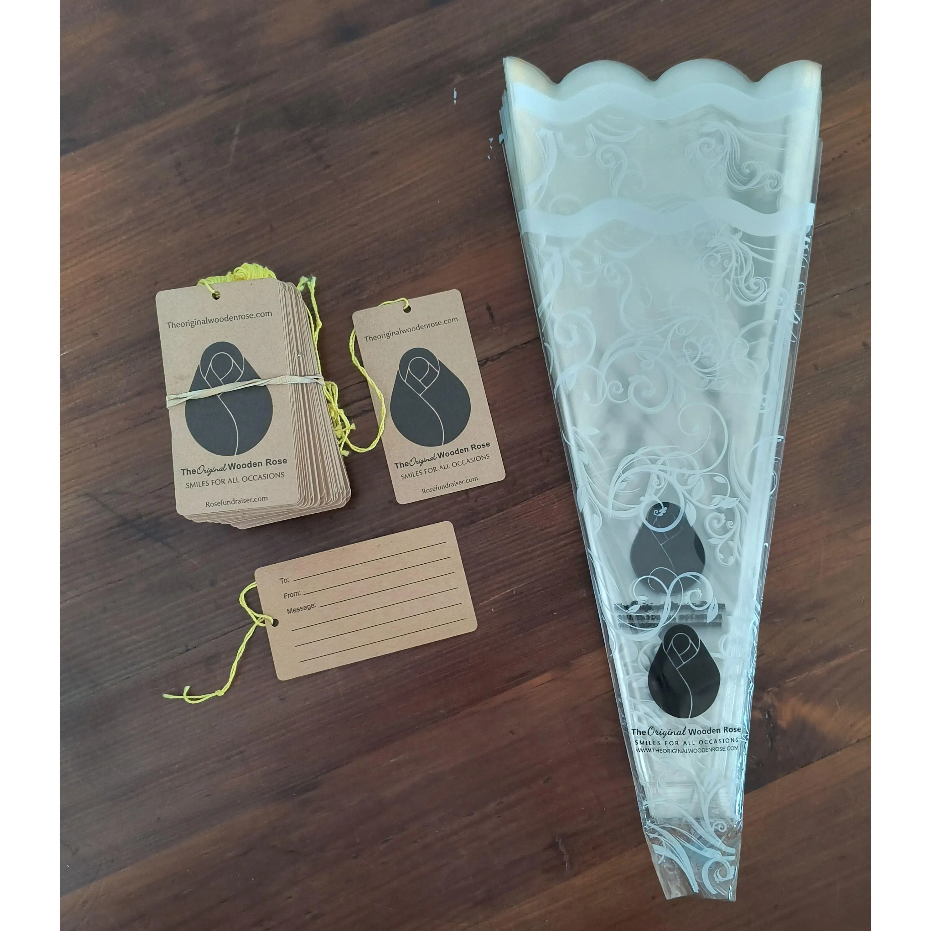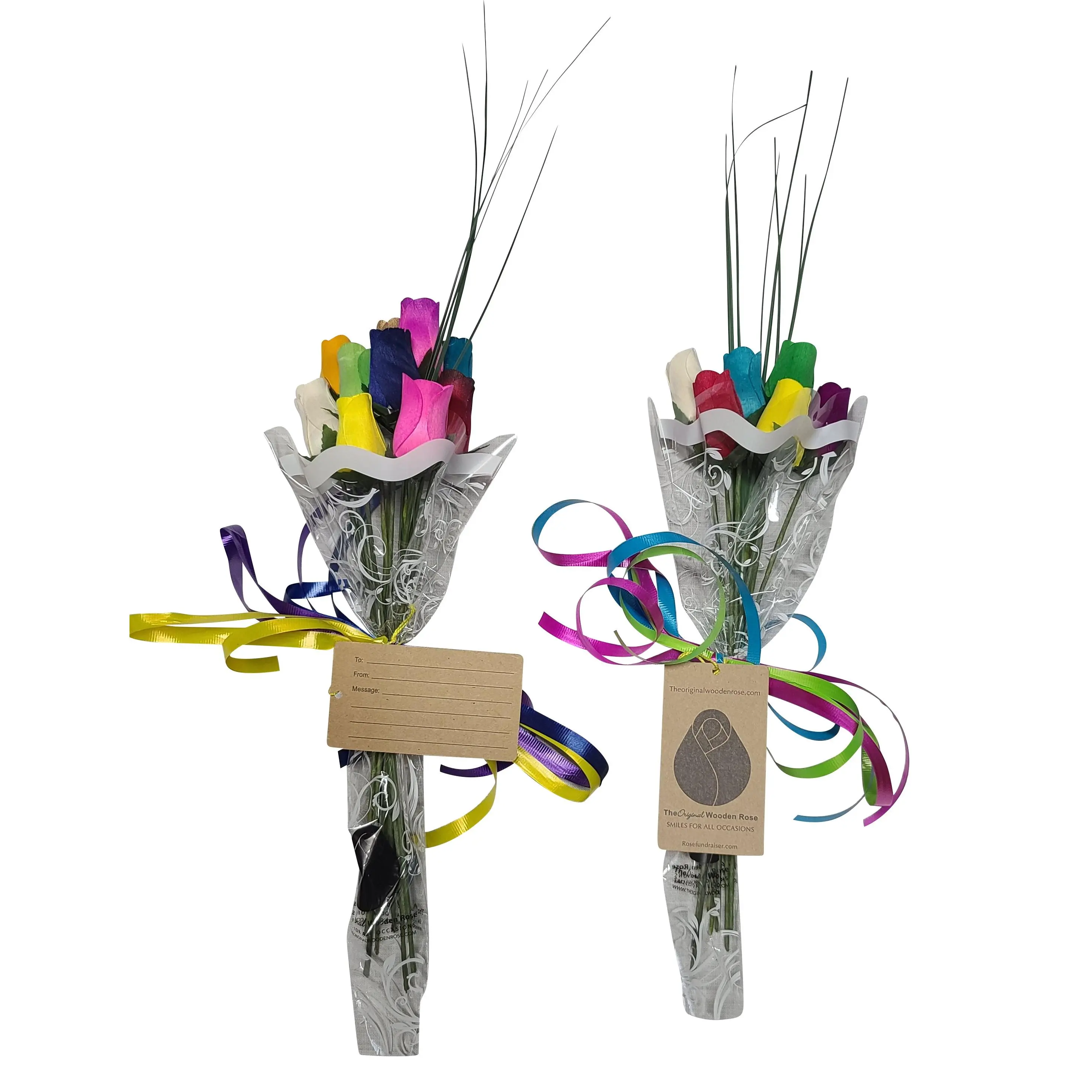You will get 1 full case (100 bunches (800 individual roses)) of Closed Bud assorted colored roses. 100 Floral Sleeves, 100 Onion Grass, and 100 Tags that are attached to the roses. These tags give people a place to add a message, along with a To and From line.