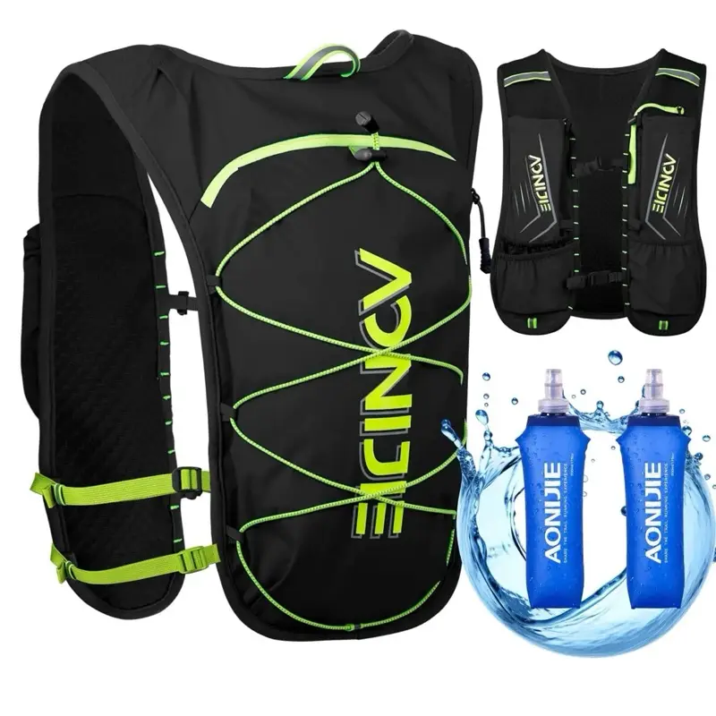 [🏃 WHAT YOU GET: One running hydration vest(or can be called as one hydration pack backpack. Capacity: 5L) two 500ml soft collapsible water bottle(or can be called as a hydro flask which fits our running water bottle vest). 🏃 CONVENIENT HYDRATION: Our running water backpack come with hydration bladder hanging system equiped like camelback. Our running hydration vest is designed with platypus bladder. Two front drawstring pockets can fill with foldable water bottle easy to drink with no dust cover. Our water bag is made like camelbacks for men and women in running. Our hydration backpack for women and men with two foldable water bottle is an excellent gear for lots of sports. 🏃 LARGE MULTIPLE STORAGE: Our running vest for men and women is designed zipper pockets and expansible bin you can carry everthing you need no matter keys mobile phone gel soft candy tissue towel sunscreen snacks energy gummies and chapstick. Our running backpack can provice instant water and energy supply due to its large capacity. This camel backpack hydration pack is roomy to backup all your stuff. 🏃 LIGHTWEIGHT ERGONOMIC: Designed from camel(camelbacks for women and men). Our running water vest can be decribed as camel backpack. This hydropack backpack is made of ultralight elastic nylon spandex and polyester only 6.7oz aligns and protects back. Ventilated mesh cover keeps cool. Mesh padding absorbs sweat efficiently flexible waist and chest straps adjust size to fit body nicely prevent any bounce or shaking during running make this water backpack for running more deeper. 🏃 EXTENSIVE APPLICATIONS: Running vest for women hydration and men. A water backpack for hiking (hiking accessory hiking backpack with water bladder) running (runners vest sturdy running backpack for women and men) marathon (hydration vest men and women gear) trekking road cycling (bike backpack) hunting training (running vest hydration pack) climbing jogging walking trail (trail running vest) and skiing. Not only a running hydration pack but also a rave hydration pack.]