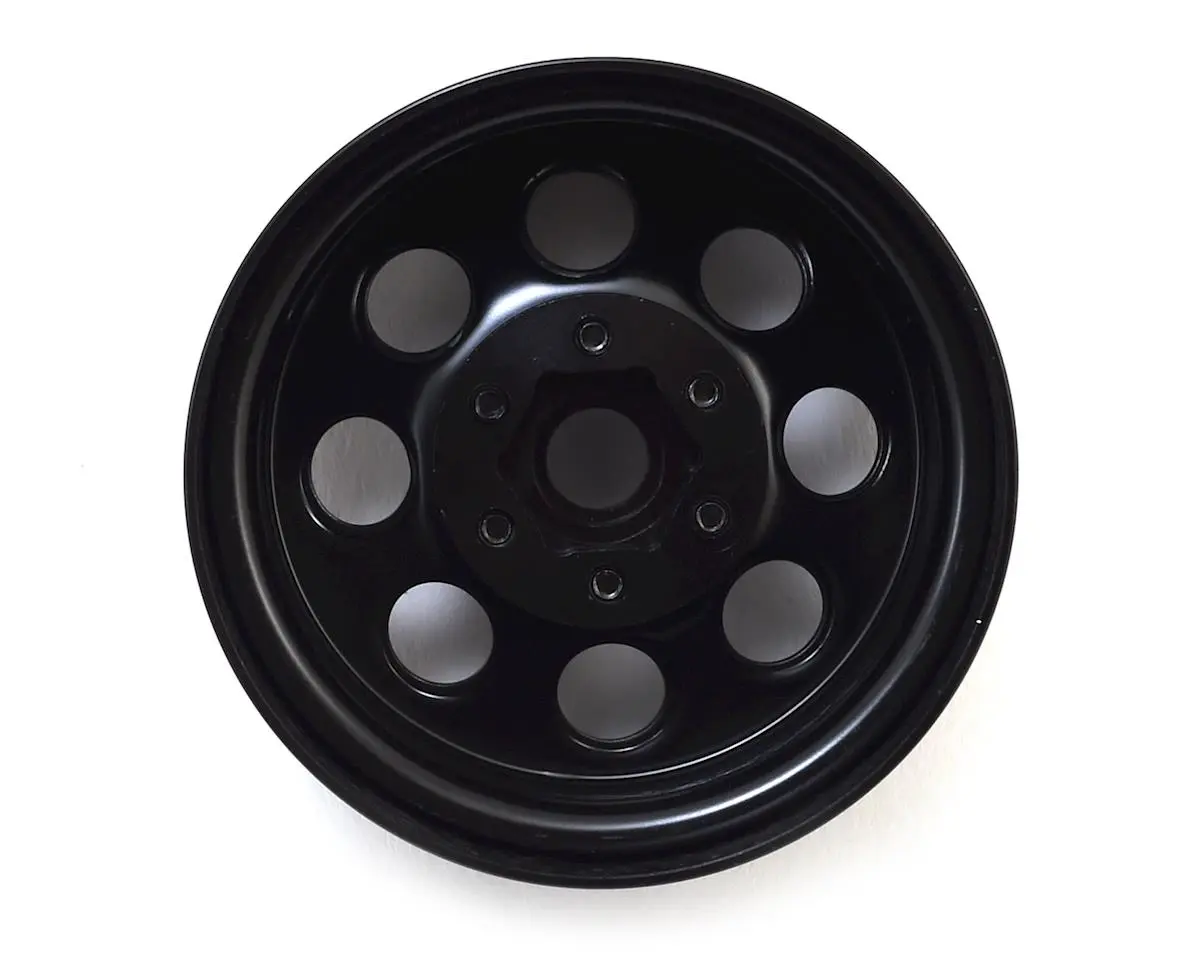 SSD 8 Hole 1.9" Steel Beadlock Wheels feature a black finish and machined aluminum 12mm hubs, combined with an internal beadlock design to create a great looking scale replica of the classic 8-hole style wheel at an affordable price.