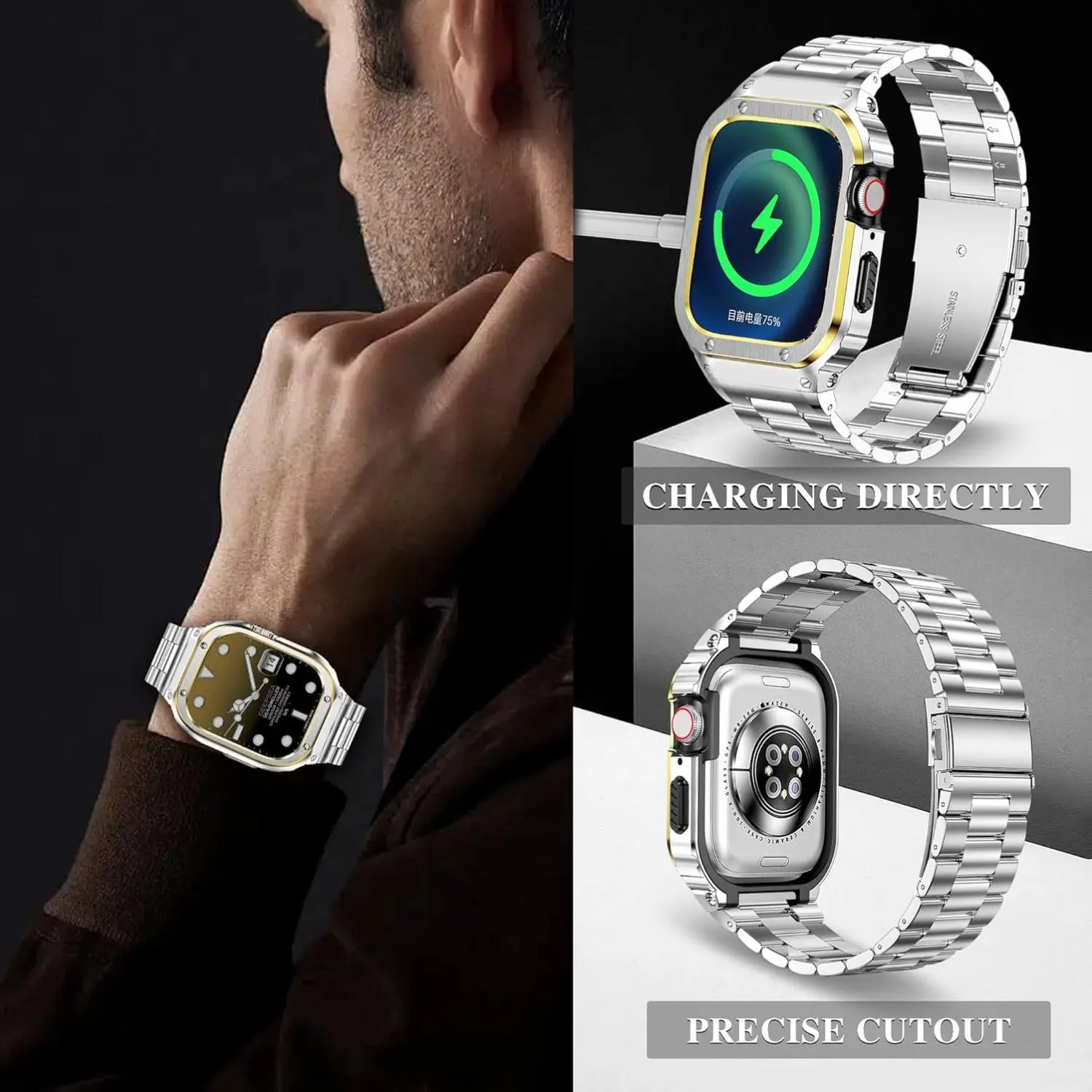 ·The band with stainless steel case for Apple Watch is much more rugged, and durable.