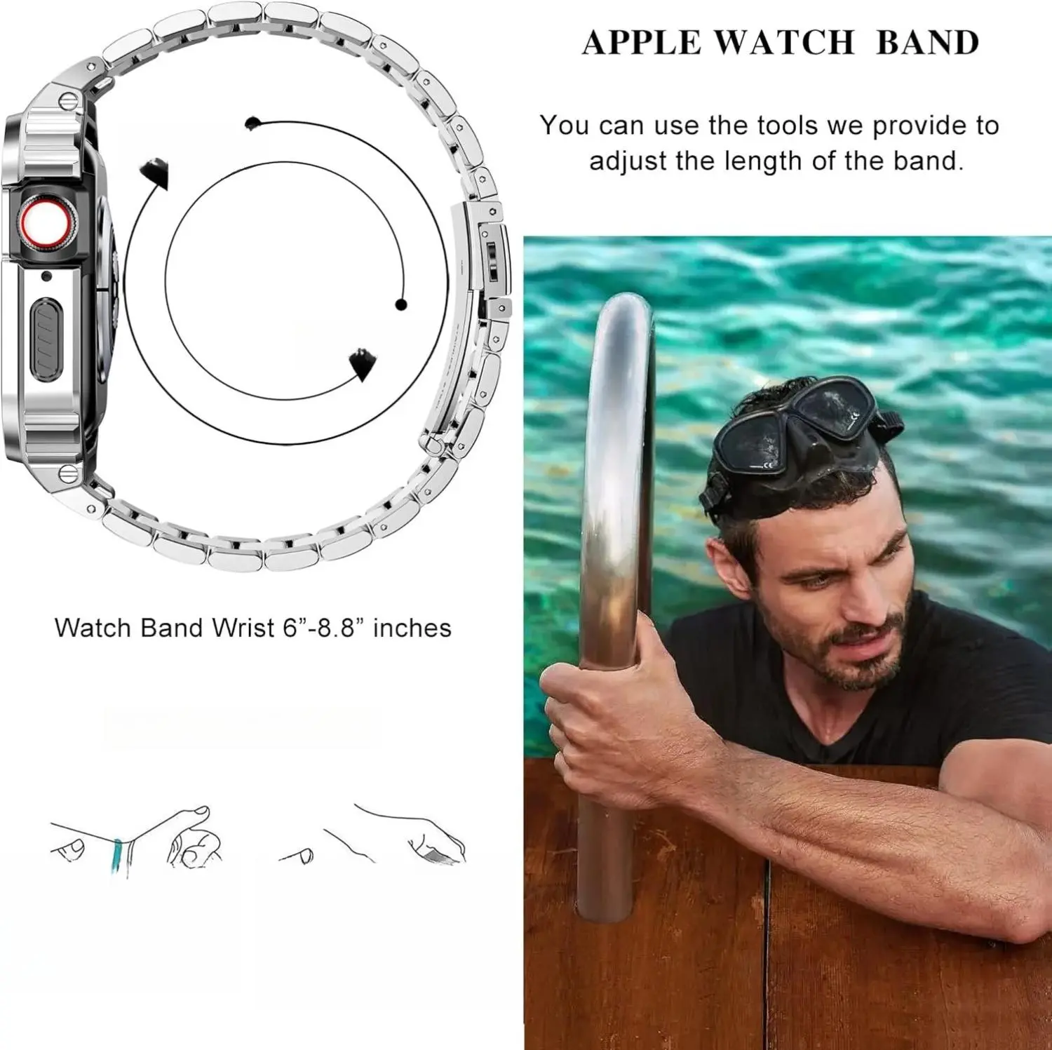 ·Packed with tools and instructions, the ultra watch band is easy to adjust to fit most wrists with sizes for 6''-8.8''.