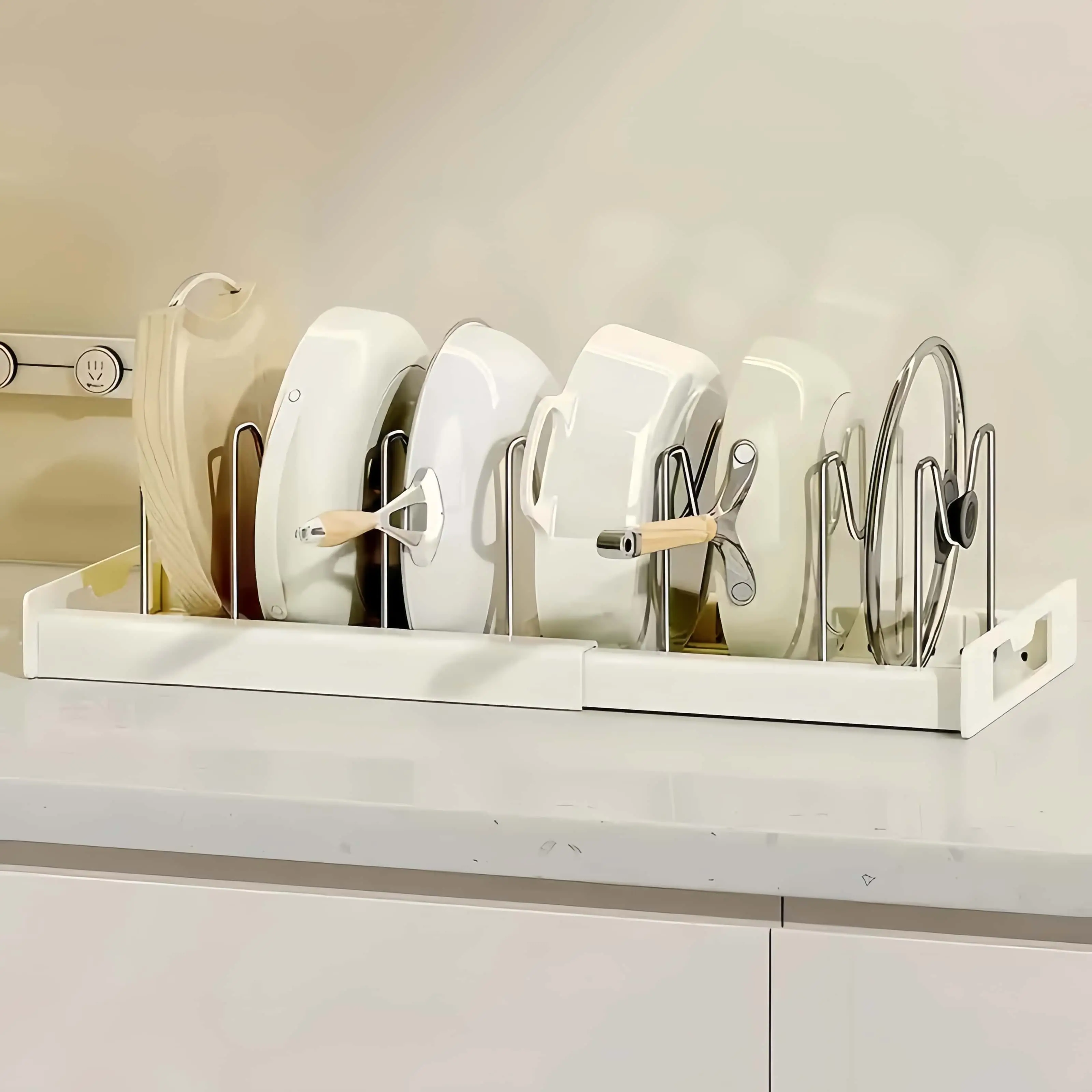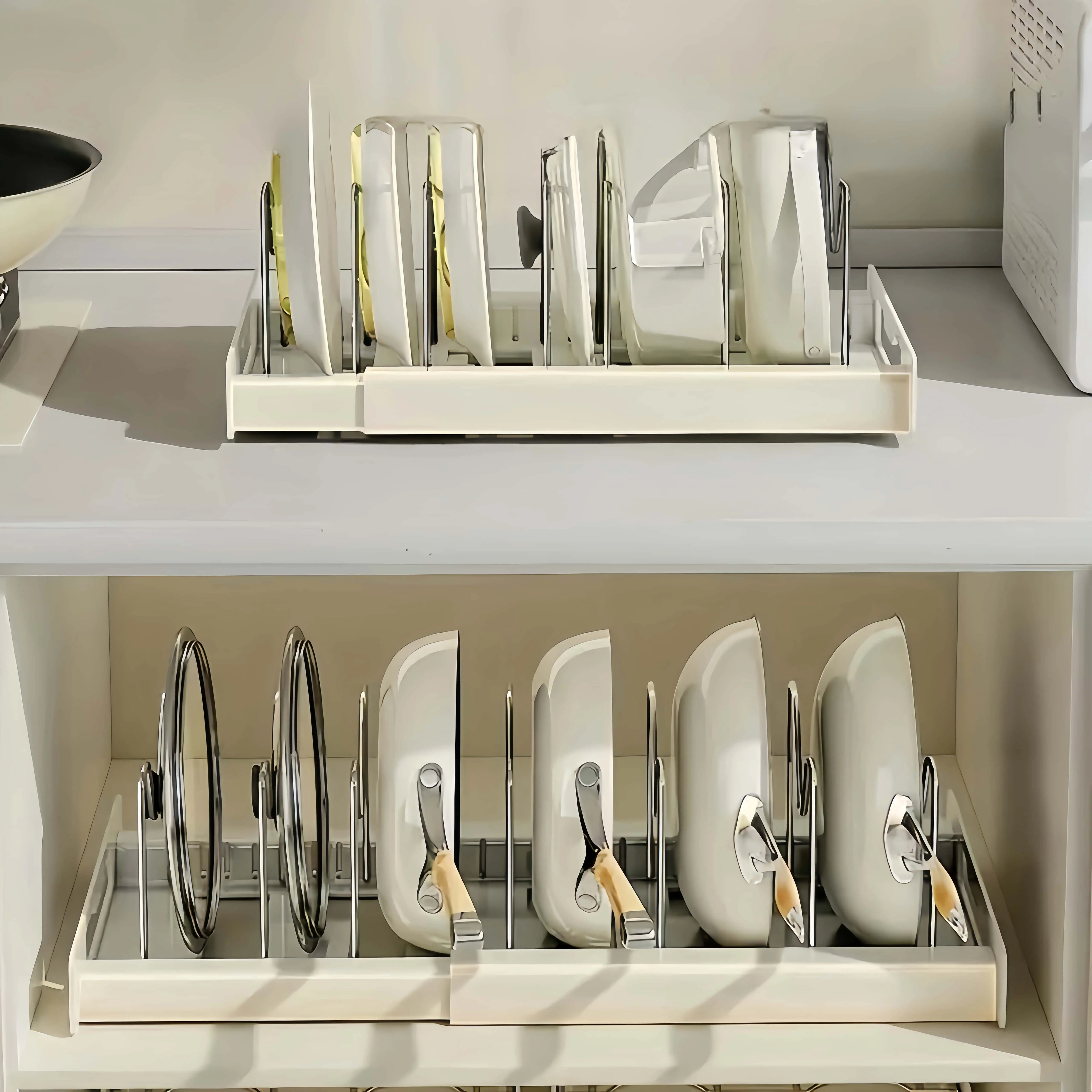 Adjustable Multi-Purpose Pot Storage Rack,Space-Saving Pull-Out Kitchen Organizer For Pots And Pans - Adjustable Metal Pot Lid Holder