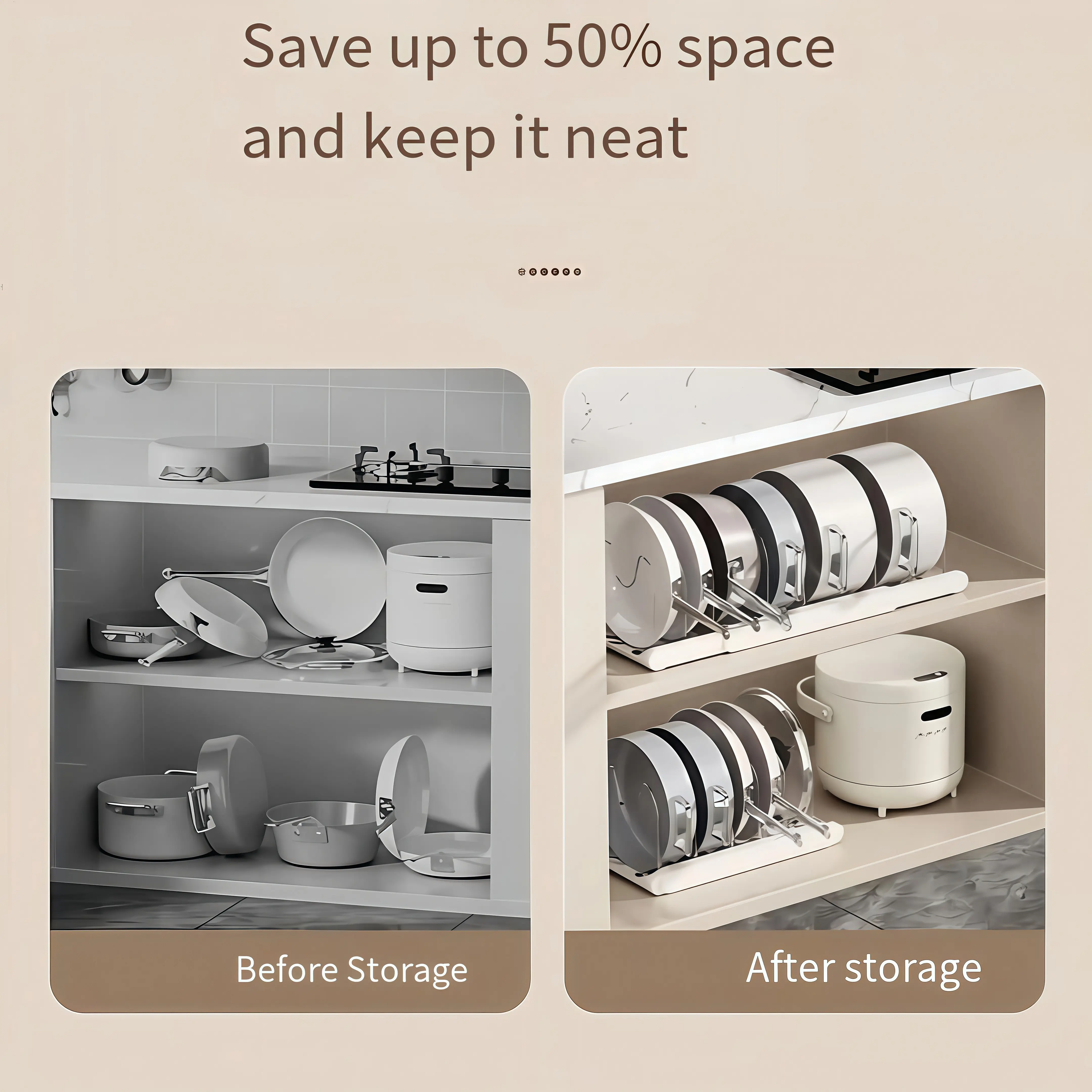 ·The organizer includes an adjustable multi-purpose storage rack. It's ideal for keeping your kitchen tidy by providing a designated spot for pots and pans. The metal construction ensures durability and stability, enhancing its functionality.
