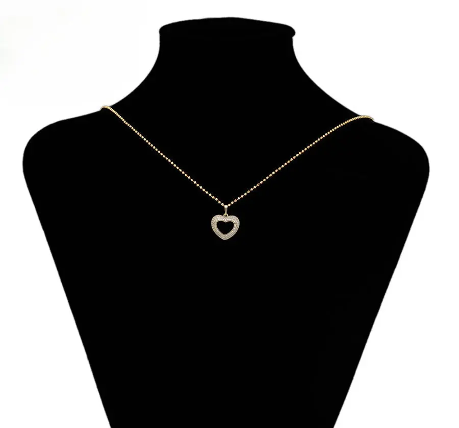 Romantic Gold Heart Pendant with Crystals - 14KGold Plated