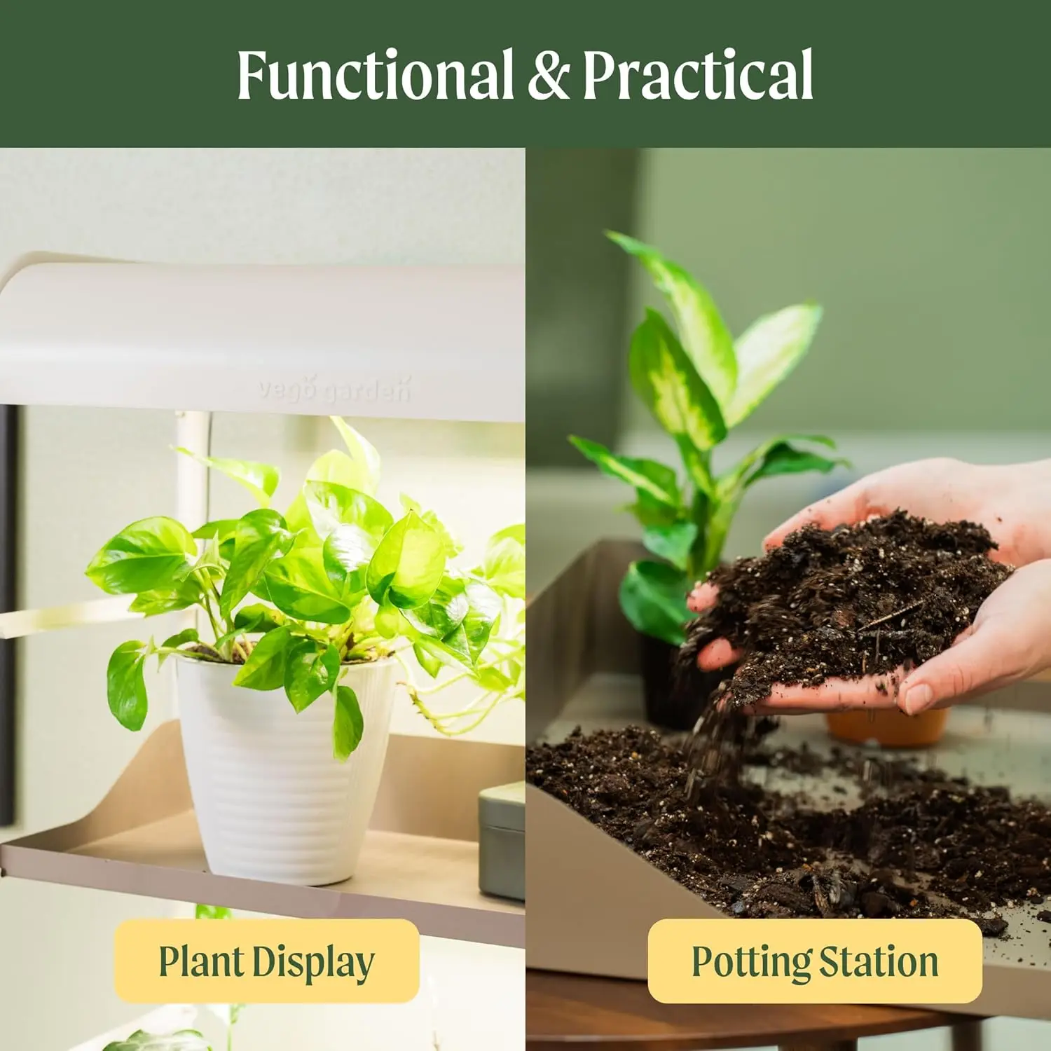 ·Grow Tall, Grow Clean: Adjustable, removable trays adapt to any plant height, while no-spill trays keep water where it belongs — not on your floor. Potting tray makes repotting, pruning, and planting a neat, mess-free experience.