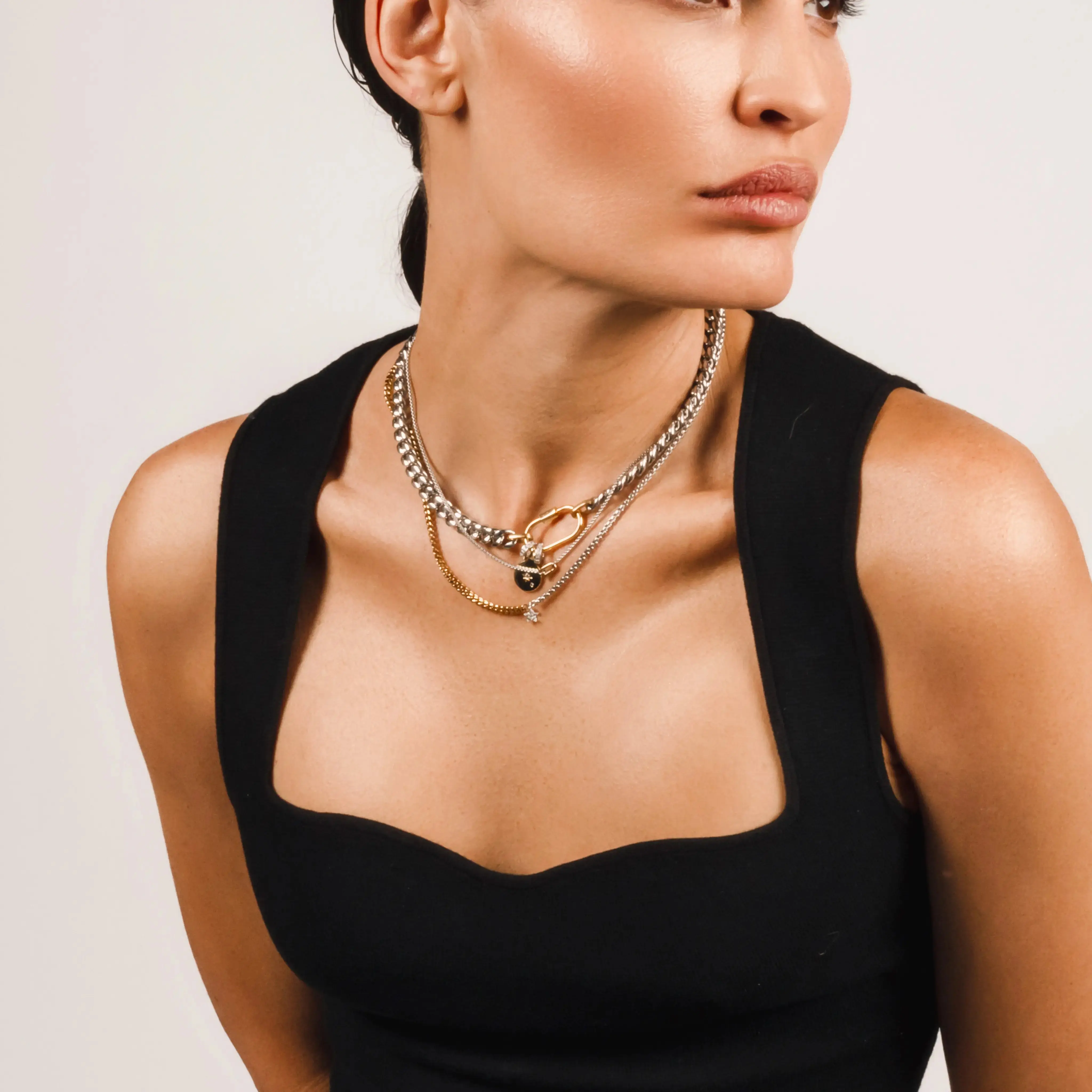Featuring our best-selling carabiner style, now with a sleek redesign, this necklace combines cosmic charm with mixed metals. It's the perfect way to upgrade your everyday style or add a standout touch for a special occasion.
