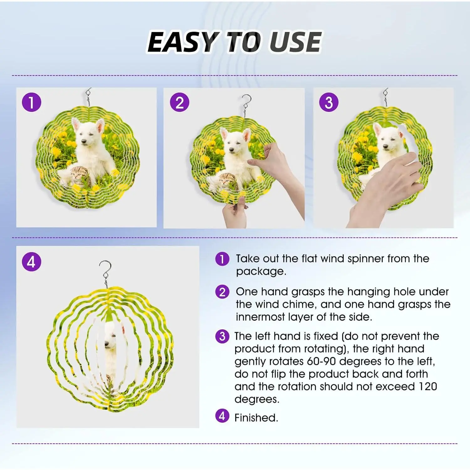 【Widely 】These 3D Metal Sublimation Wind Spinners can be for yard, garden, indoor, outdoor, windows, porch decoration; they can also be given as a present to your friends and family. This versatility makes them a popular choice for individuals looking for present.