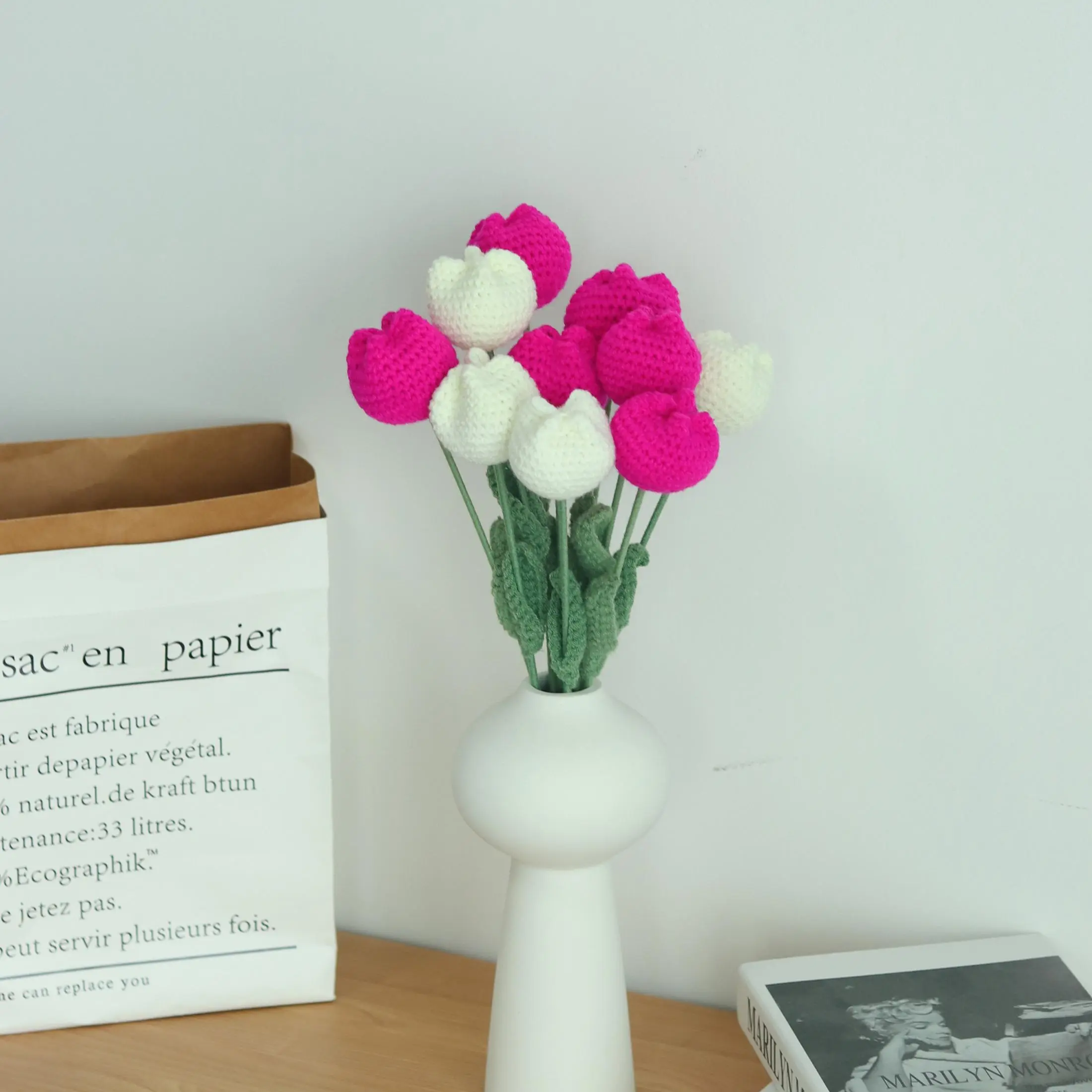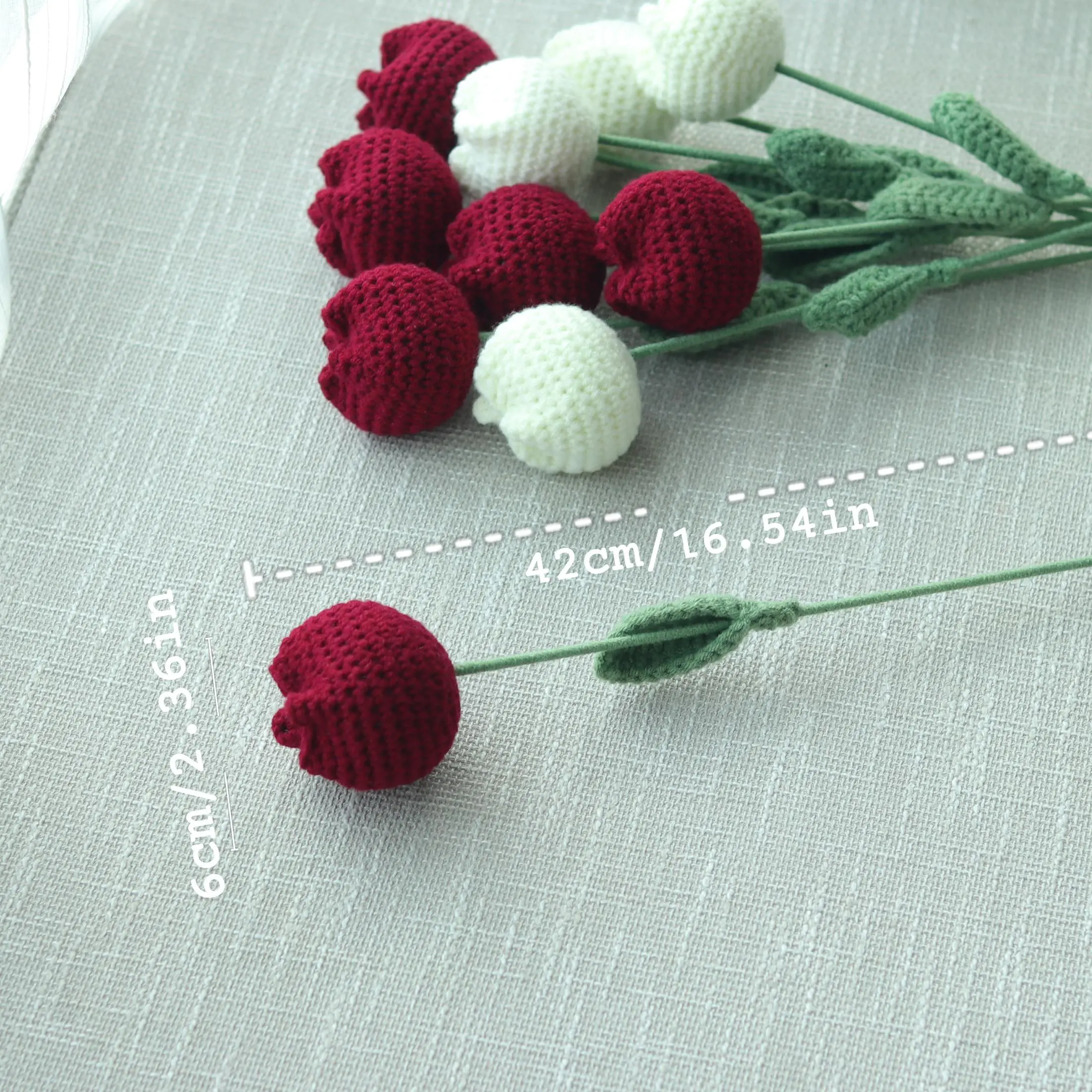Handmade Crochet Plush Tulip Bouquet, Faux Flower Bouquet, DIY Bouquet for Party and Home Decor, Home Decor Supplies, Fruit, Crochet Artificial Flowers