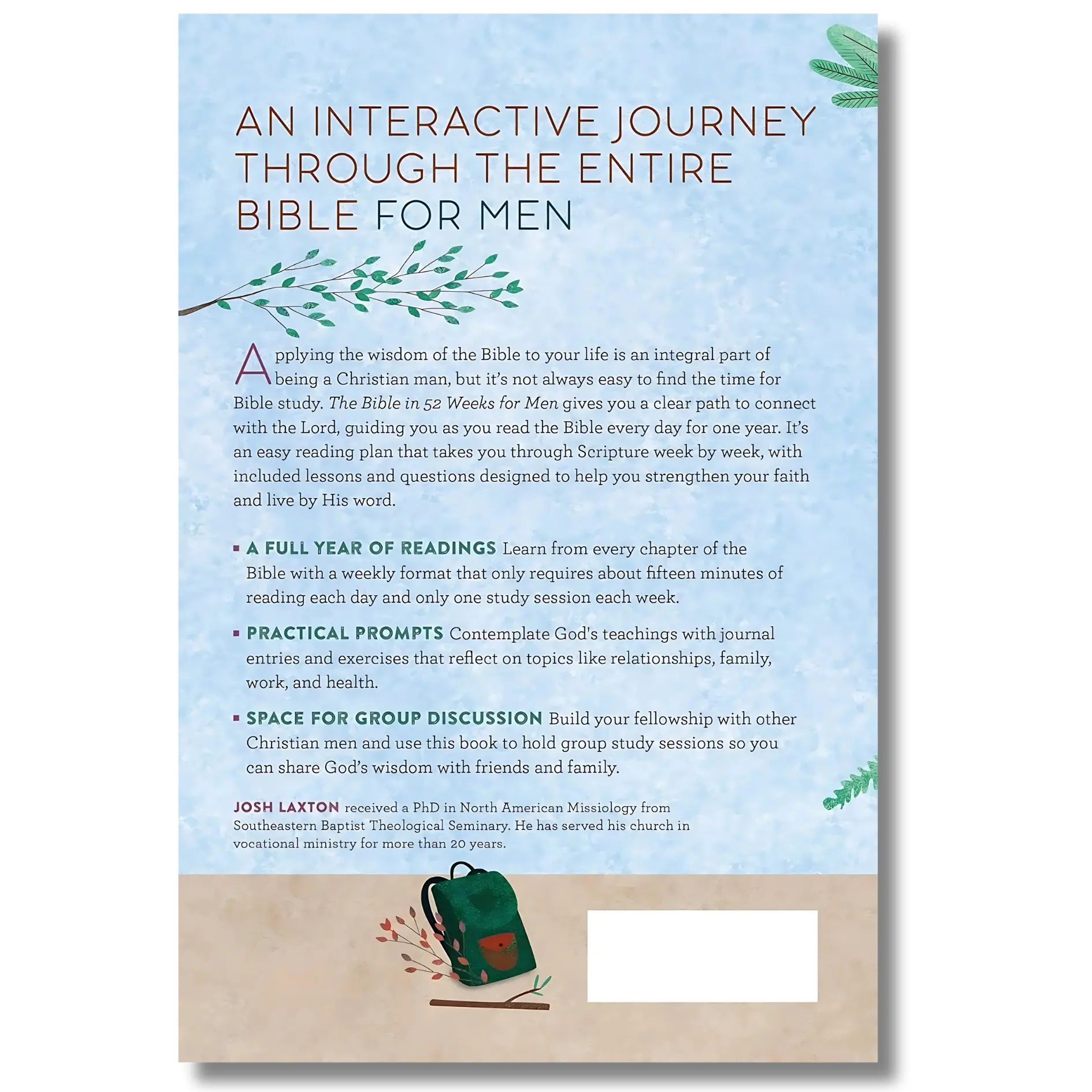 A full year of readings―Learn from every chapter of the Bible with a weekly format that only requires about fifteen minutes of reading each day and only one study session each week.