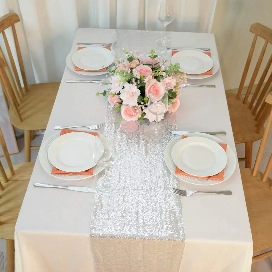 This sequined table runner sparkles under the lights, showing the ultimate sparkle effect.The delicate sequins can capture and reflect the surrounding light, making it a great choice for holiday and event decorations, making your table instantly glow.