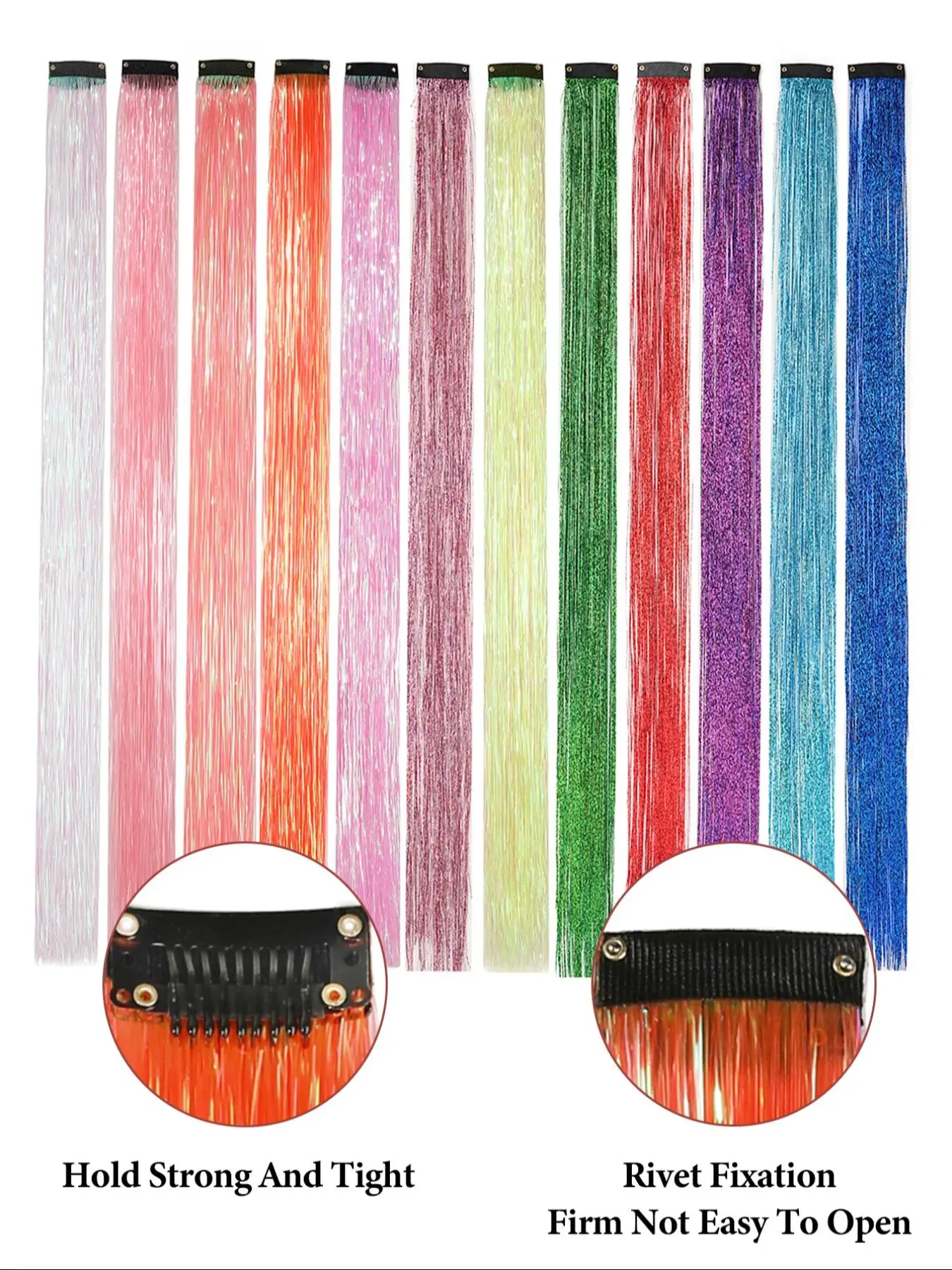 Clip in Hair Tinsel Synthetic 22 Inch Colorfull Tinsel Hair Extensions 12Pcs/Pack for Women Girls Party Christmas New Year Gift Synthetic Soft Hairpieces