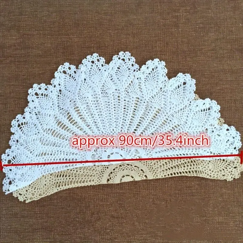 35.4inch Polyester Blend Handmade Crochet Round Tablecloth - Vintage Doily for Universal Holiday Decor and Special Occasions