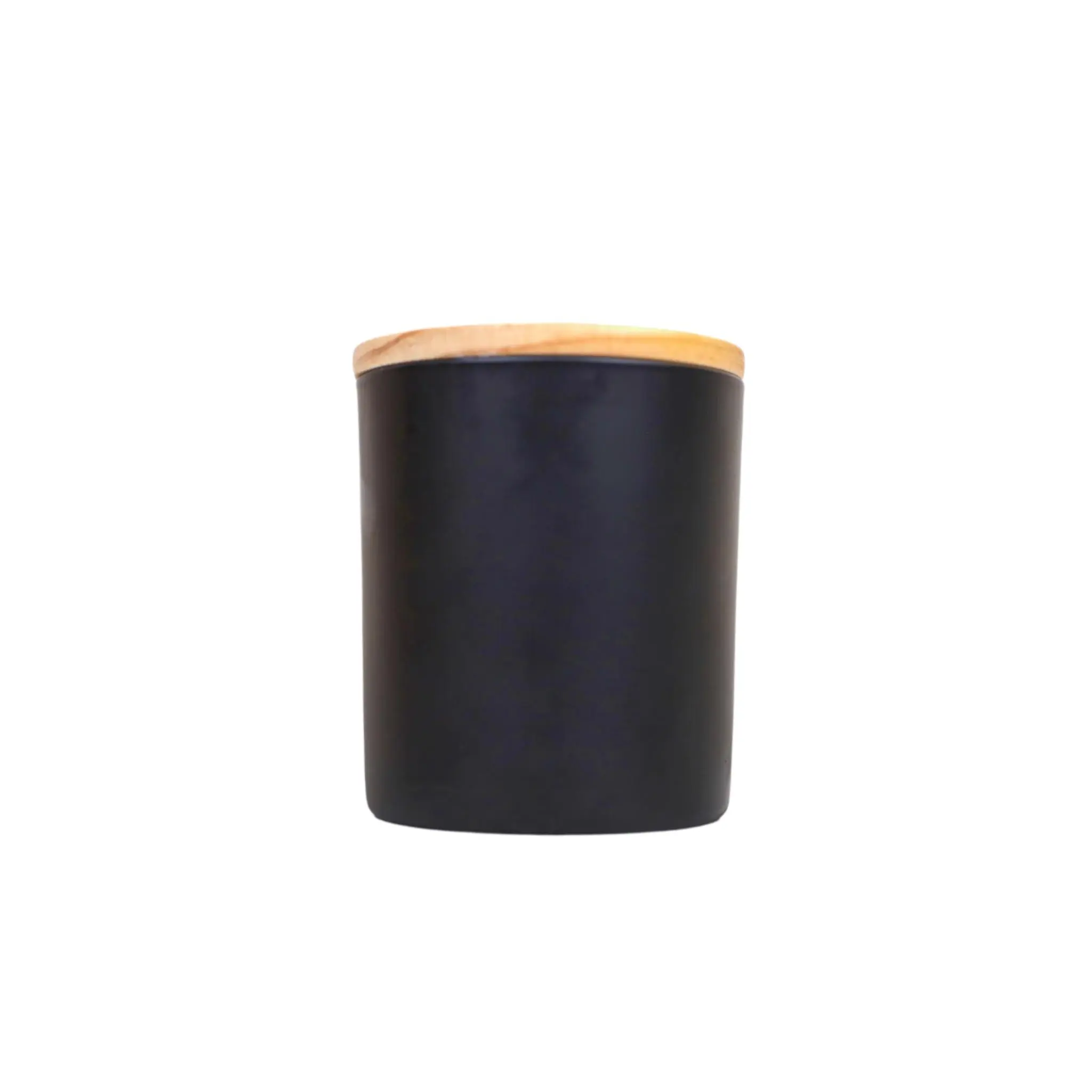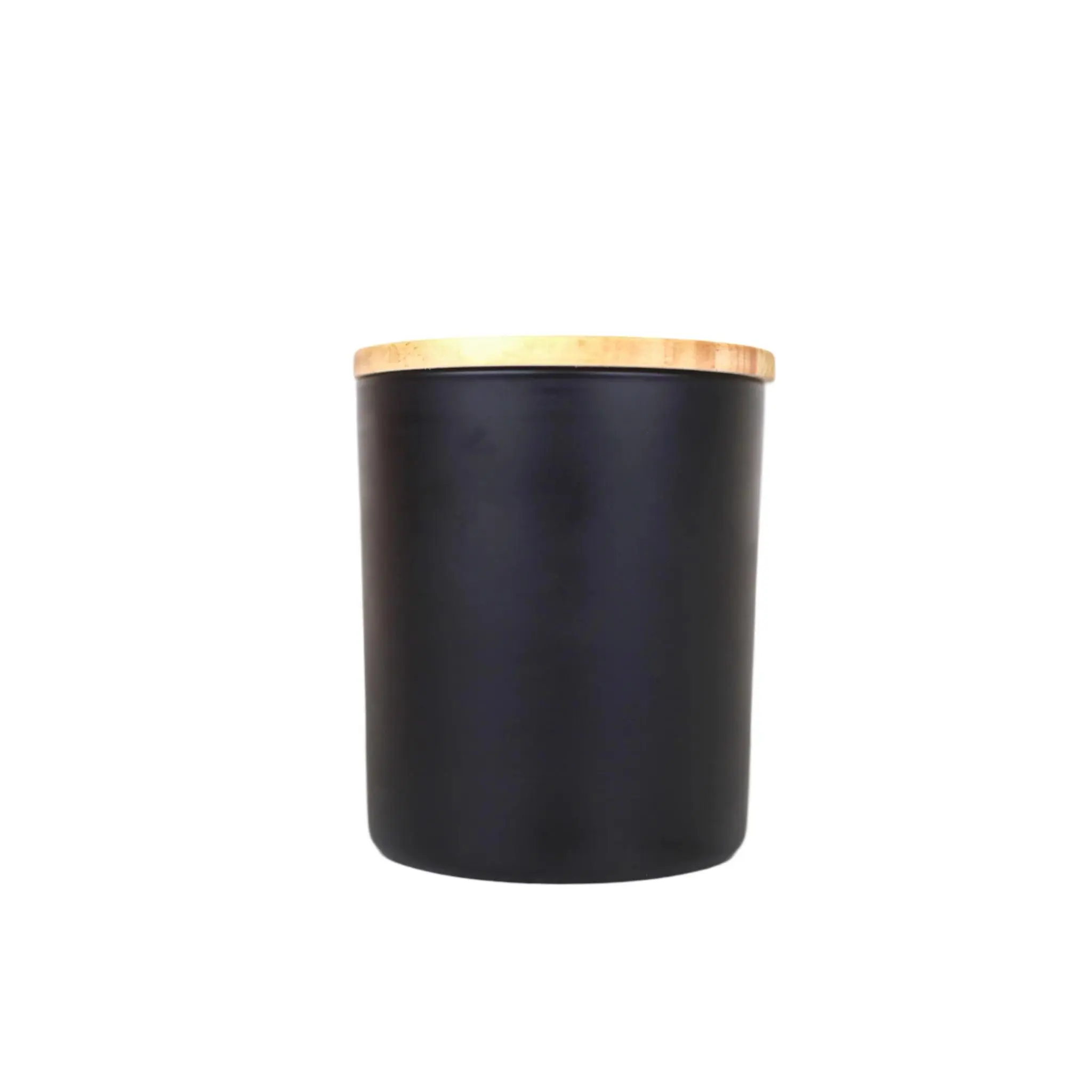 Kimonyx 10 Private Label 12 oz Matte Black Coconut-Apricot Candles with Natural Wood Lid Classic 4-inch Tumbler Cali Jar Design Semi Visible Flames Decor Ornaments