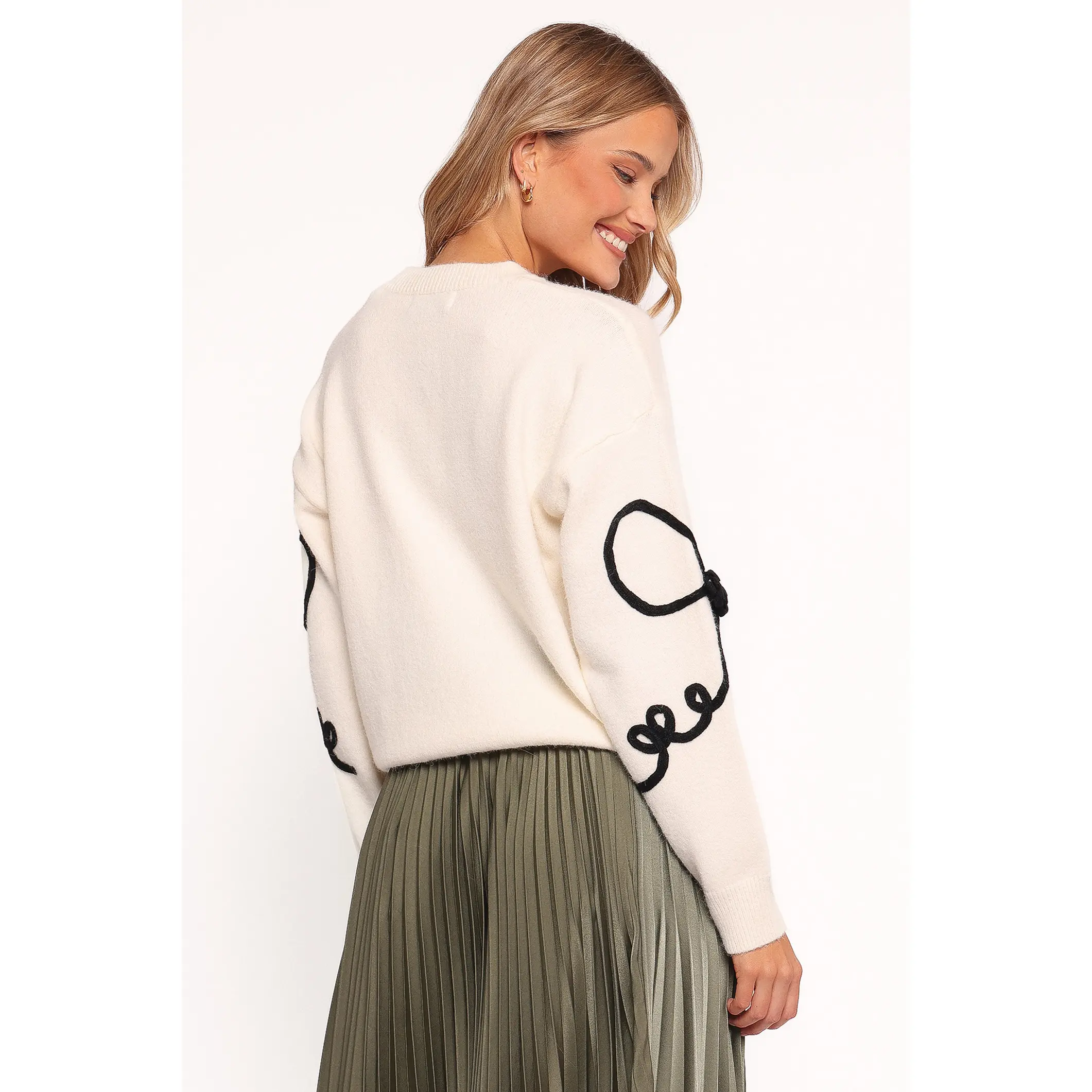 Elevate your everyday wardrobe with the Isiora Bow Embroidered Knit Sweater in Cream the perfect mix of playful charm and cozy sophistication. Featuring a classic round neckline and long sleeves, this knit feels as good as it looks.
