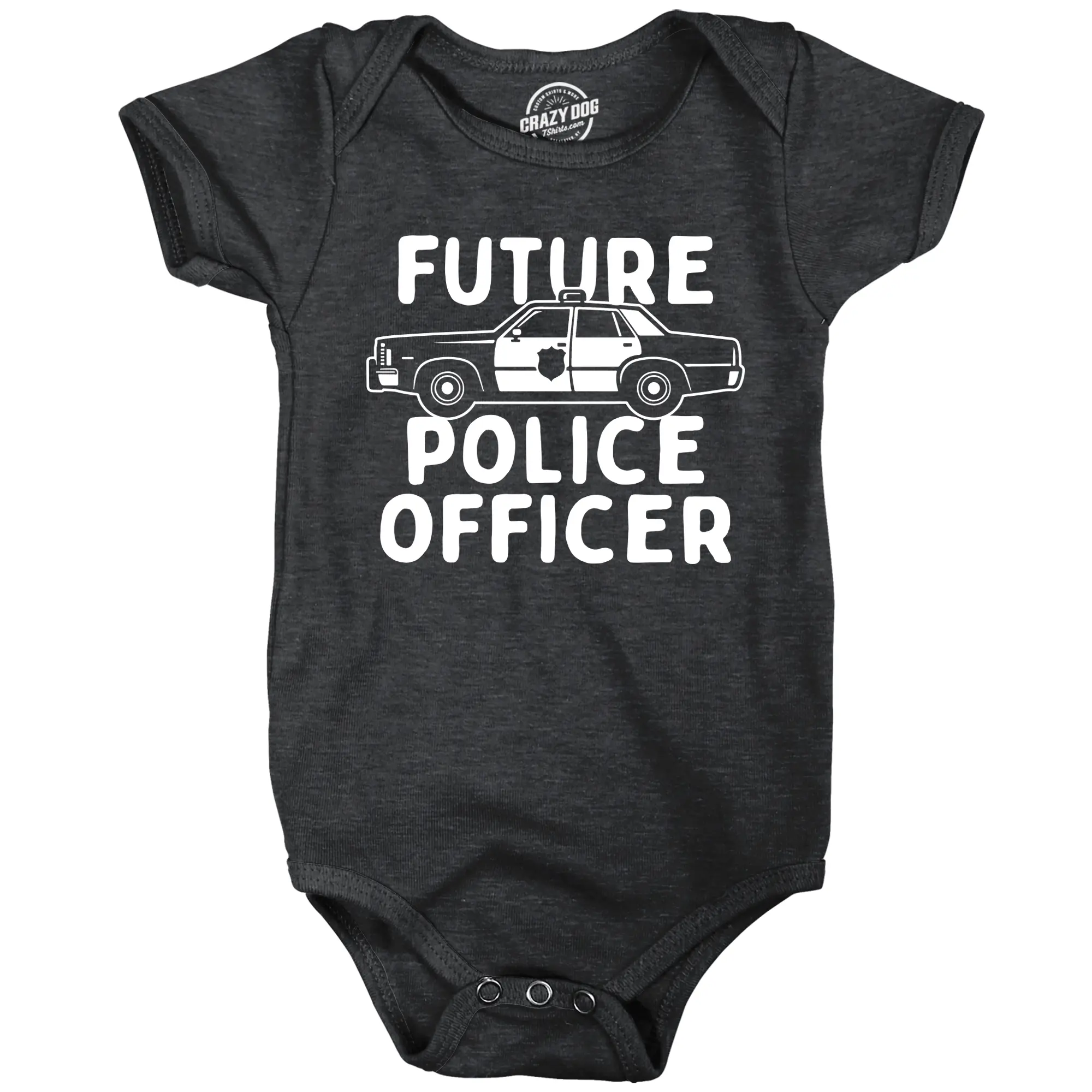 This is a Heather Black - Future Police Soft Comfortable Funny Onesie sold by Crazy Dog T-Shirts.
