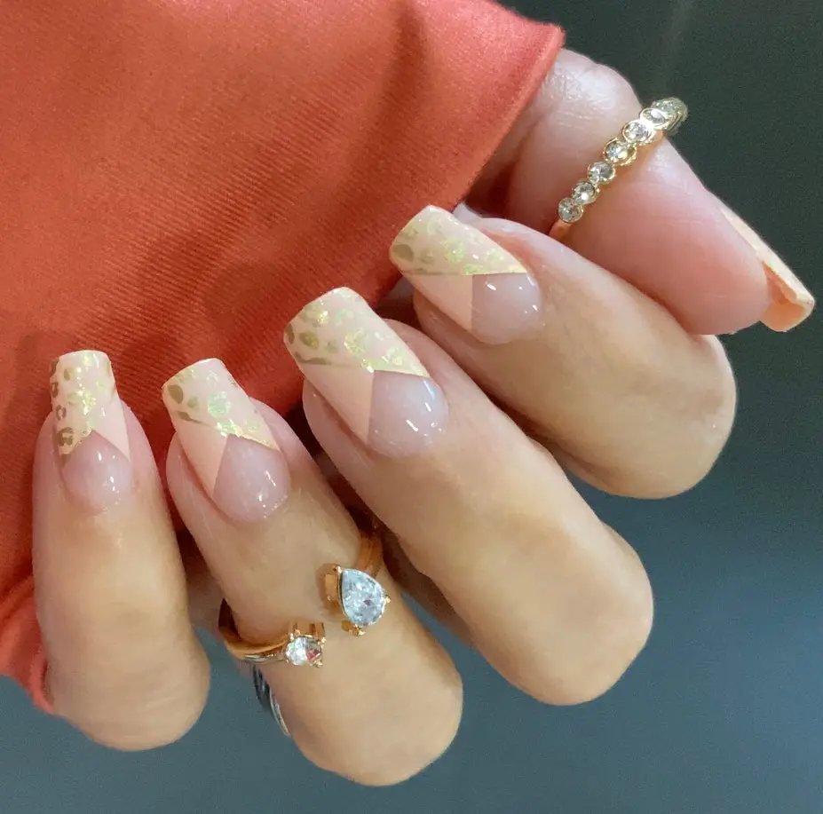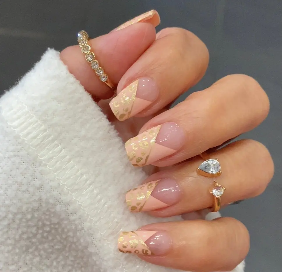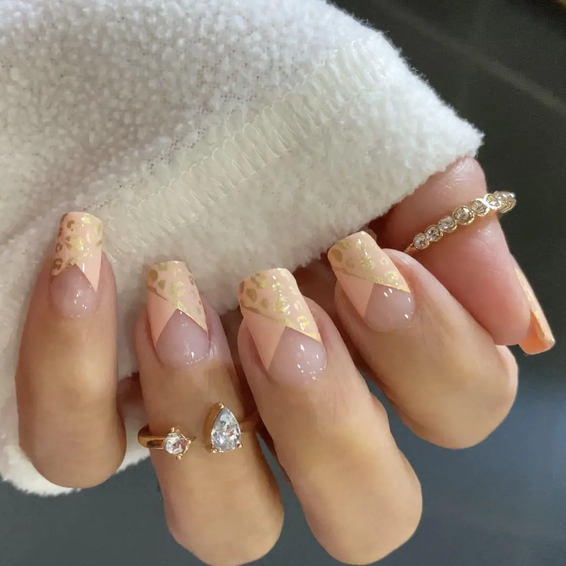 Beetles Press on Nails Long Coffin Extra Long French Tips Coffin Almond Square Press on Nails Brown Pink Acrylic Tips Pre-designed False Nail Tip, No File Need DIY Manicure Gifts for Women
