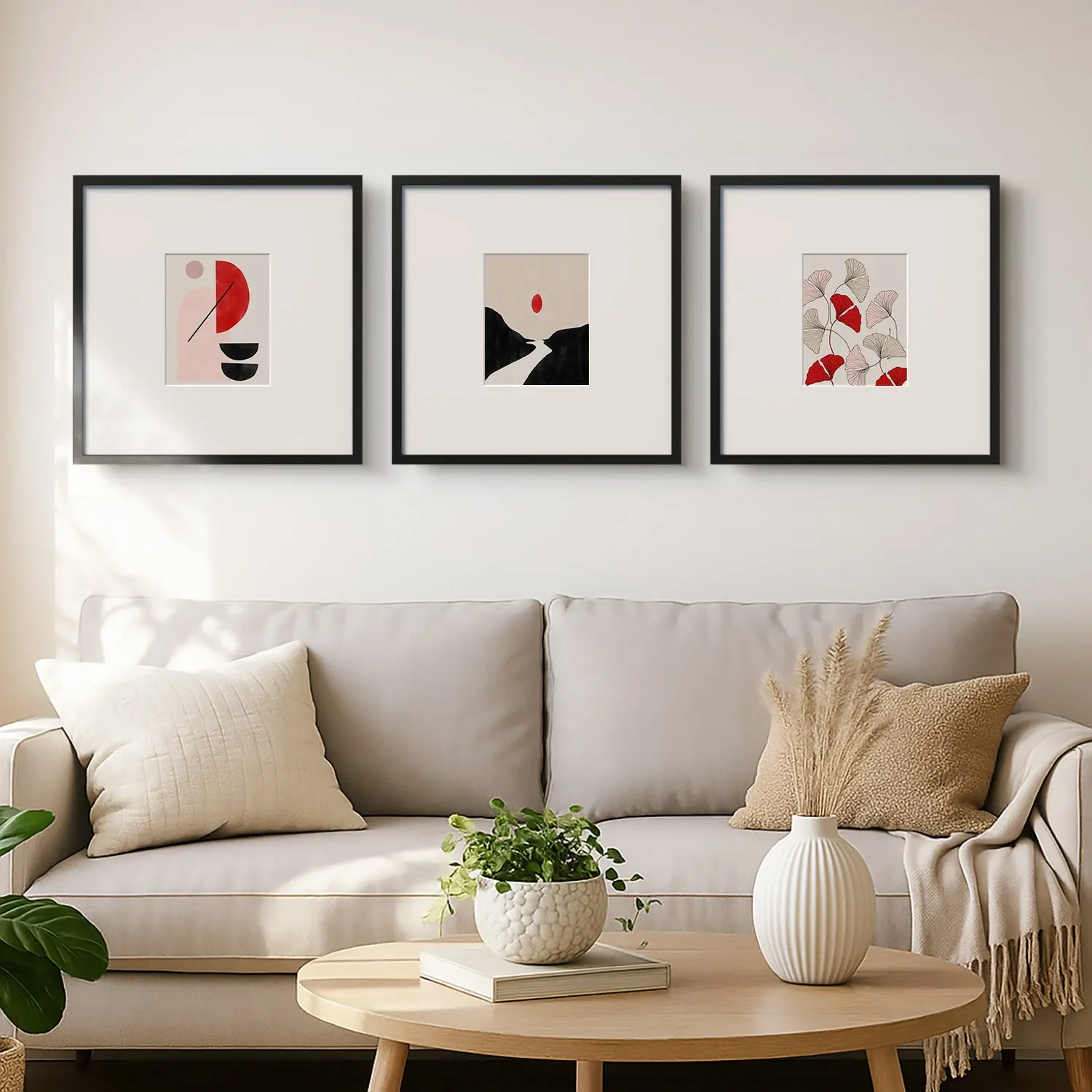 Americanflat 20x20 Picture Frame with Mat | Set of 3 | Black Slim Molding