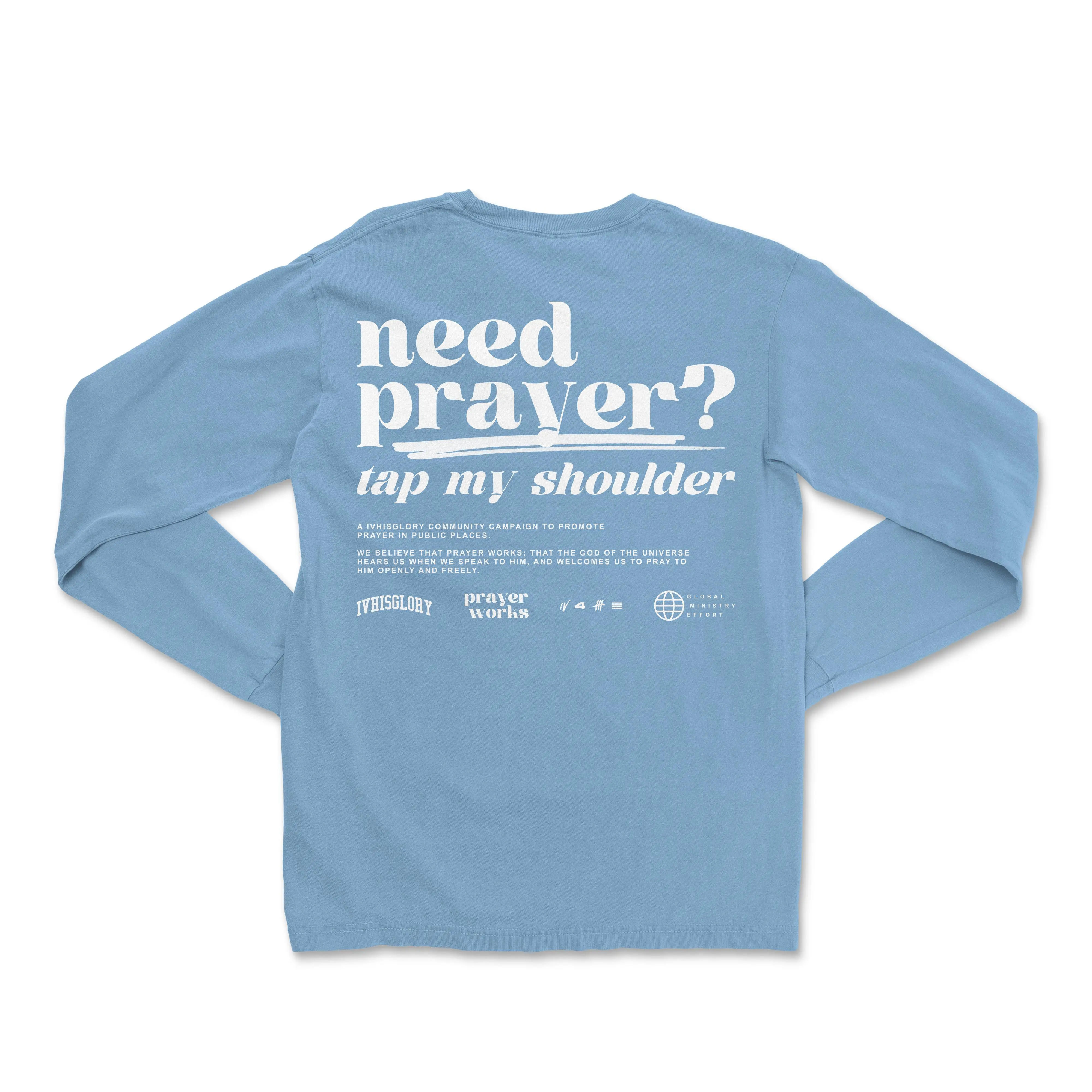 This is legit one of the best ideas ever. People often reject evangelism as condemnation or judgement. With simply offering prayer, we're just showing Christ's love. I want many more to wear almost every day like a uniform. If I could wear it to work, I would. About to order the hoodie soon.
