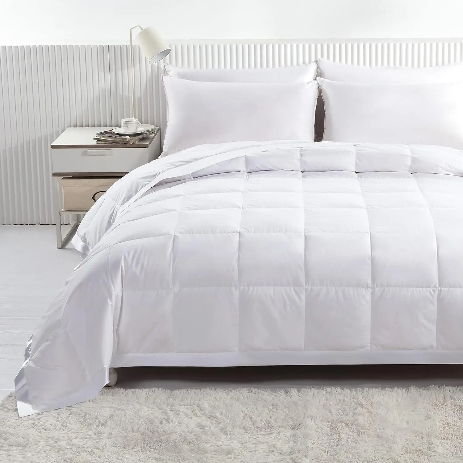 HOW TO GRASP THE DETAILS - We strictly selected down fiber and fillings and made this down fibers blanket carefully. The special design of box stitch keeps the down fiber filling in place and good stitching prevents down fiber from shifting or leaking out. And this soft down fibers blanket with satin trim on the edges has a beautiful looking that can decorate your room better.