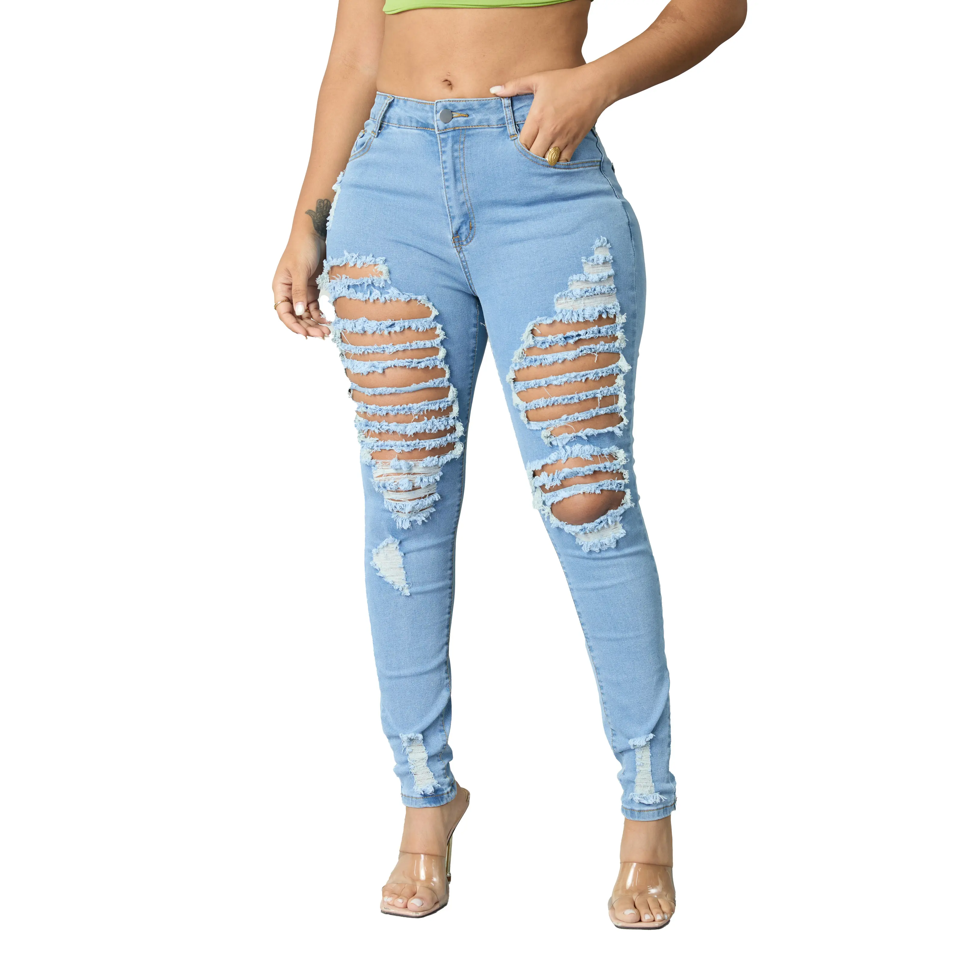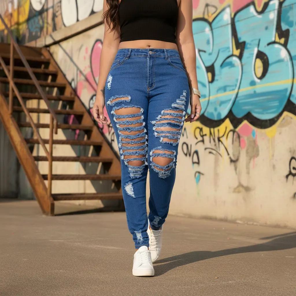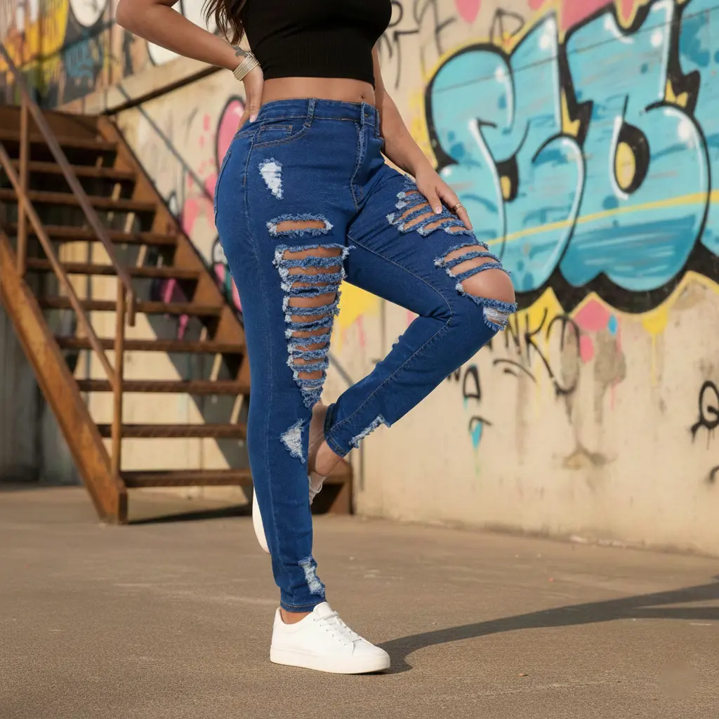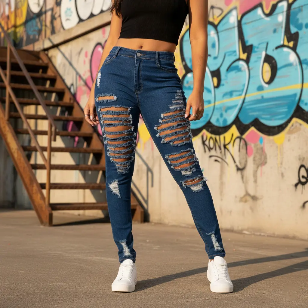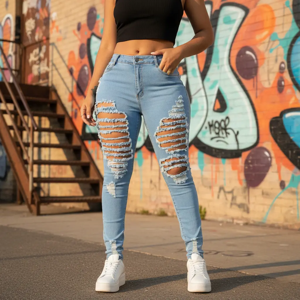 Elevate your style with Distressed Skinny Jeans! 🌟 Crafted from 71% cotton, 27% polyester, and 2% spandex, these jeans offer unmatched comfort and durability. The cotton ensures softness, while polyester enhances longevity. Spandex adds flexible stretch for movement. Perfect for everyday wear, these jeans feature strategic knee rips for a trendy, edgy look.