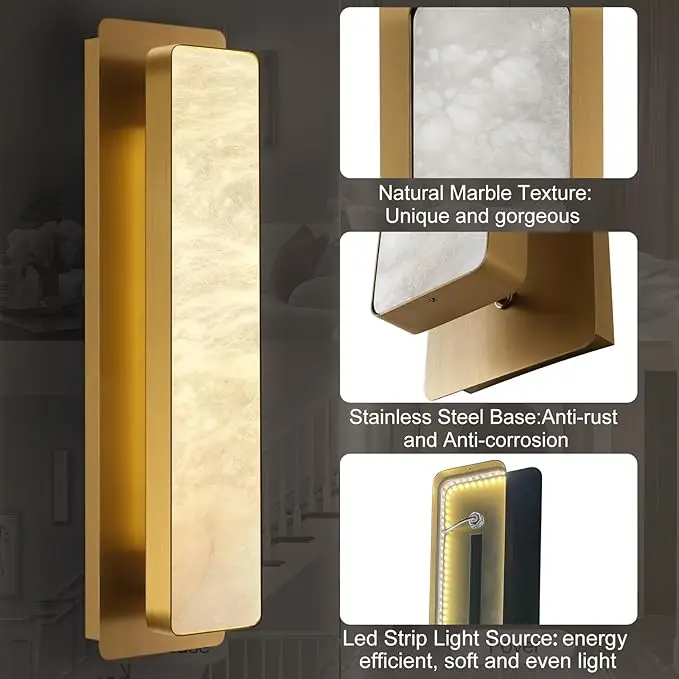 ·【Natural Alabaster Wall Light】Wall sconces is made of real natural stone, the slender wall light perfectly combines natural alabaster with smooth metal details, exuding a sense of modern sophistication while highlighting the beauty of natural stone. They hang beautifully and naturally, and are well worth a try.
