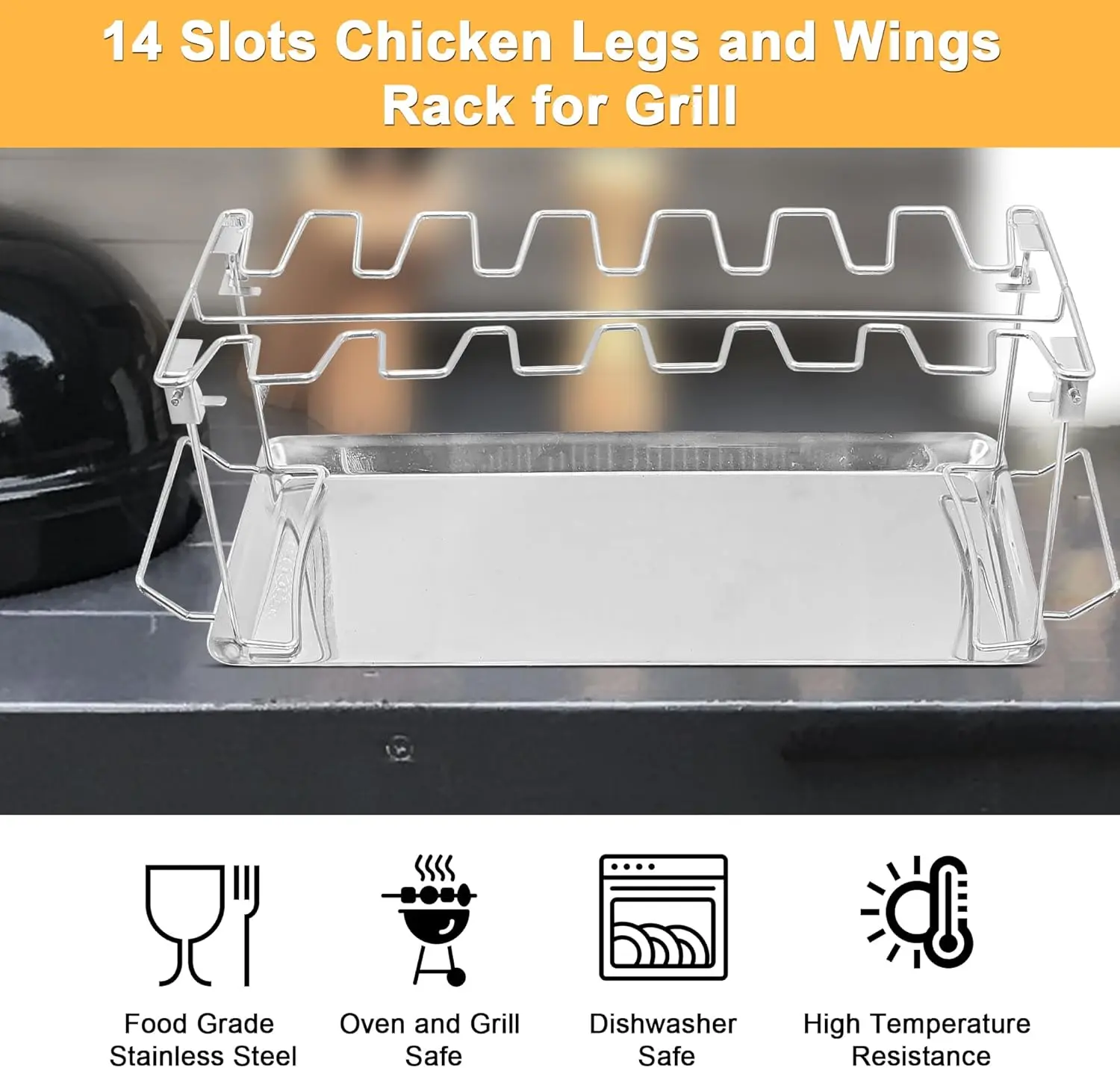 Just Hang And Leave - Don't have to worry about turning them, this 14-slot chicken drumstick grill rack will make your chicken legs and wings perfectly cooked on all sides evenly and incredibly juicy!
