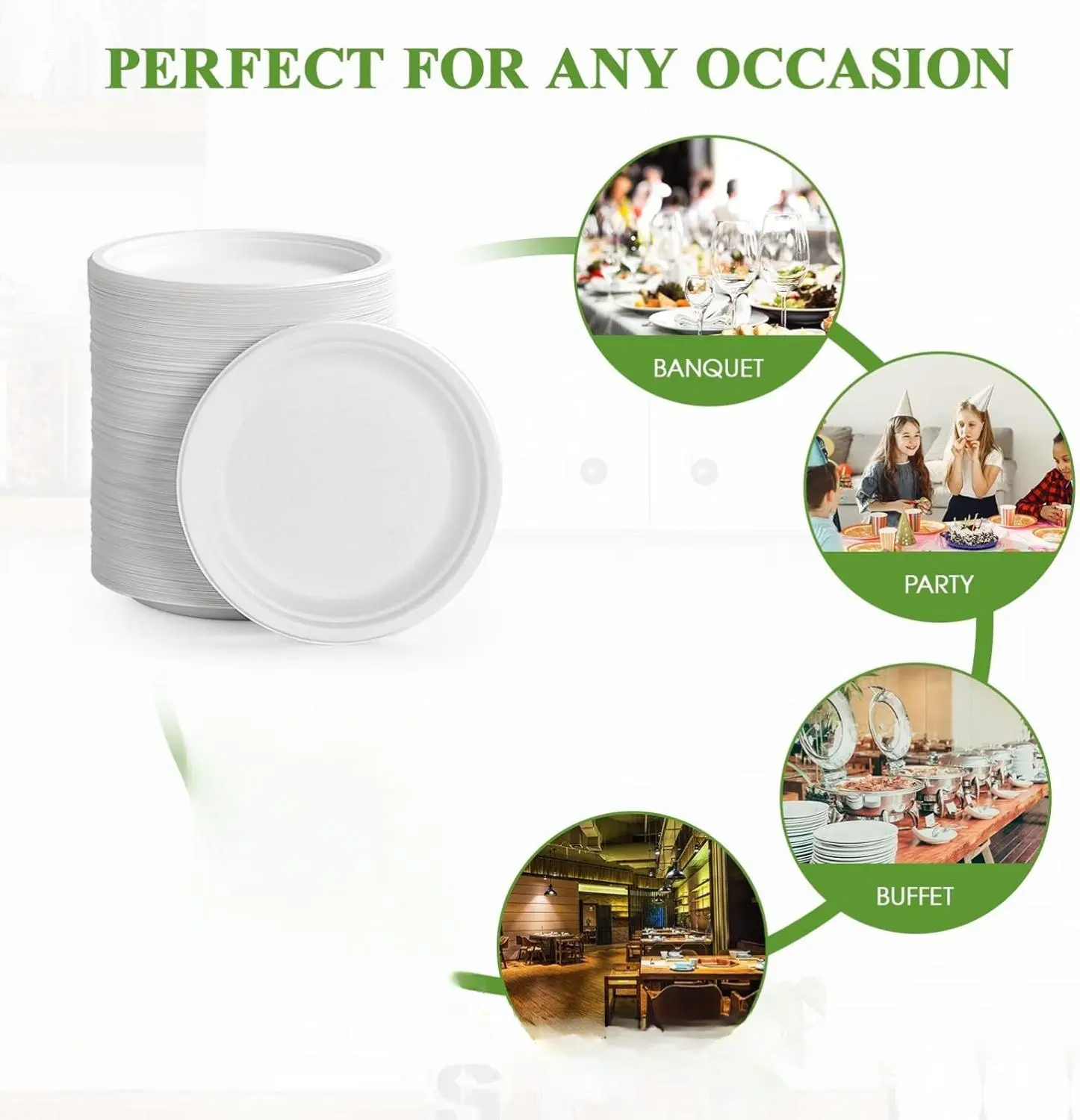 Host Parties With Ease: Suitable for family events, schools, restaurants, office lunches, BBQs, picnics, outdoor activities, birthdays, weddings, and more. These disposable paper plates add convenience to any gathering.