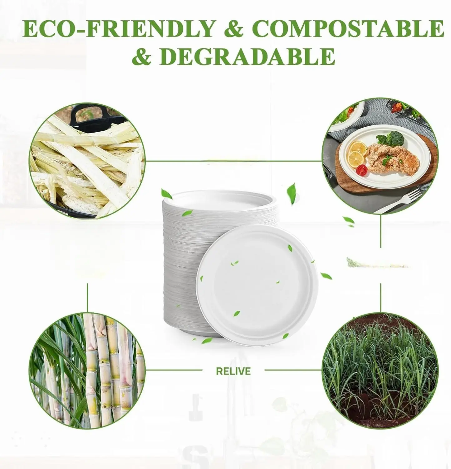 Good For Environment: These paper plates are crafted from sustainable sugarcane fibers and bamboo. They are 100% biodegradable and compostable, ensuring easy disposal. Perfect for eco-conscious users, these plates reduce environmental impact without compromising on style.