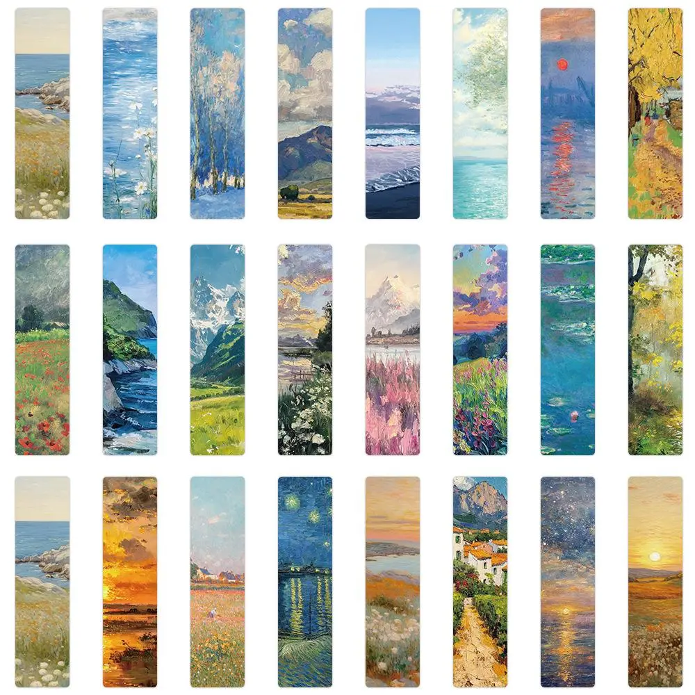 5. Oil Painting Landscape Pattern Bookmark, 24pcs/set Creative Paper Bookmark, Reading Bookmark for Home School Office Dormitory