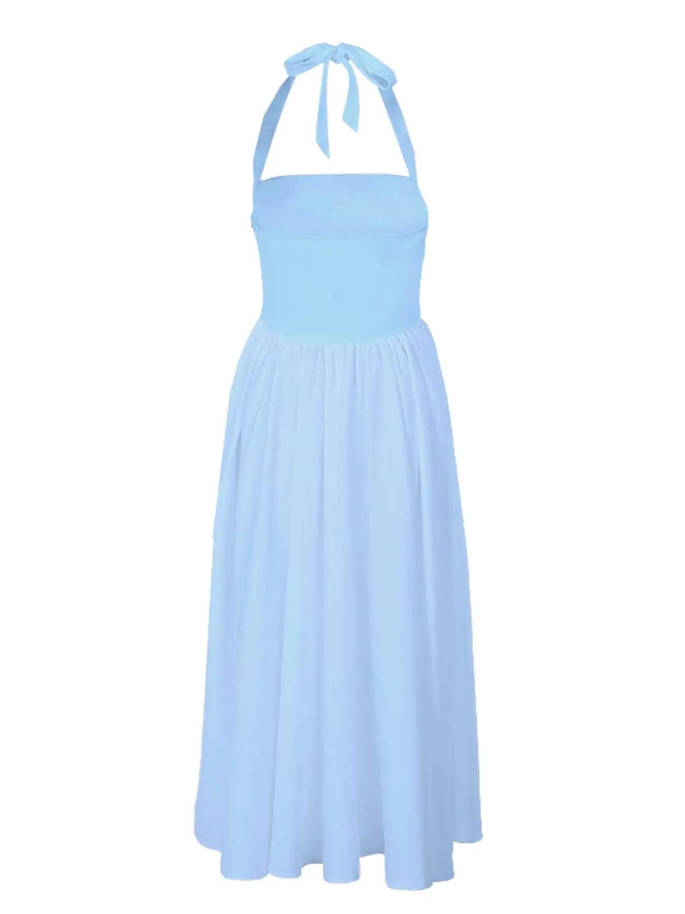 Summer New European and American Style Solid Color Pleated Sleeveless Strap Dress