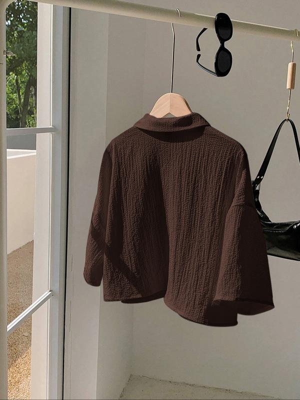Women's Solid Color Shirt, Casual Button Front Top for Summer, Women's Clothing for Daily Wear