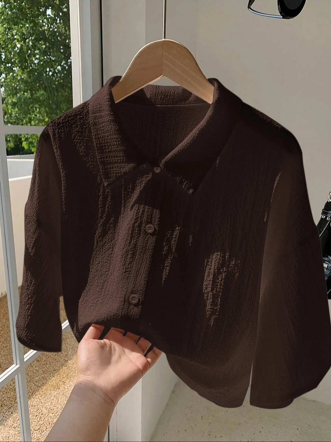 5. Women's Solid Color Shirt, Casual Button Front Top for Summer, Women's Clothing for Daily Wear