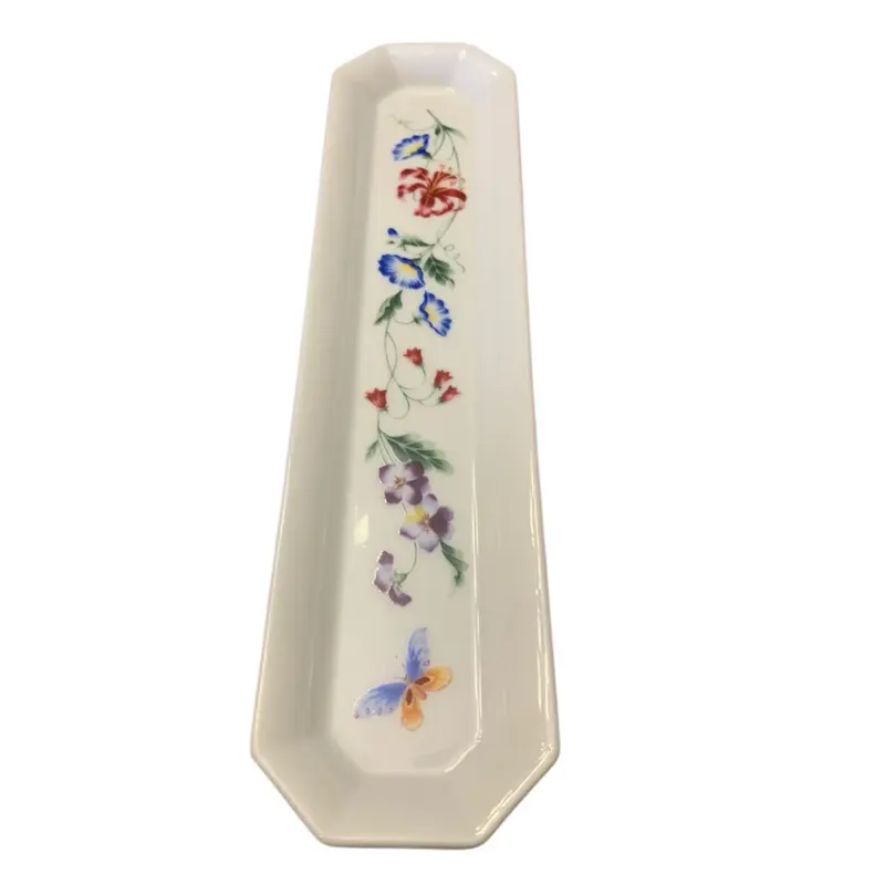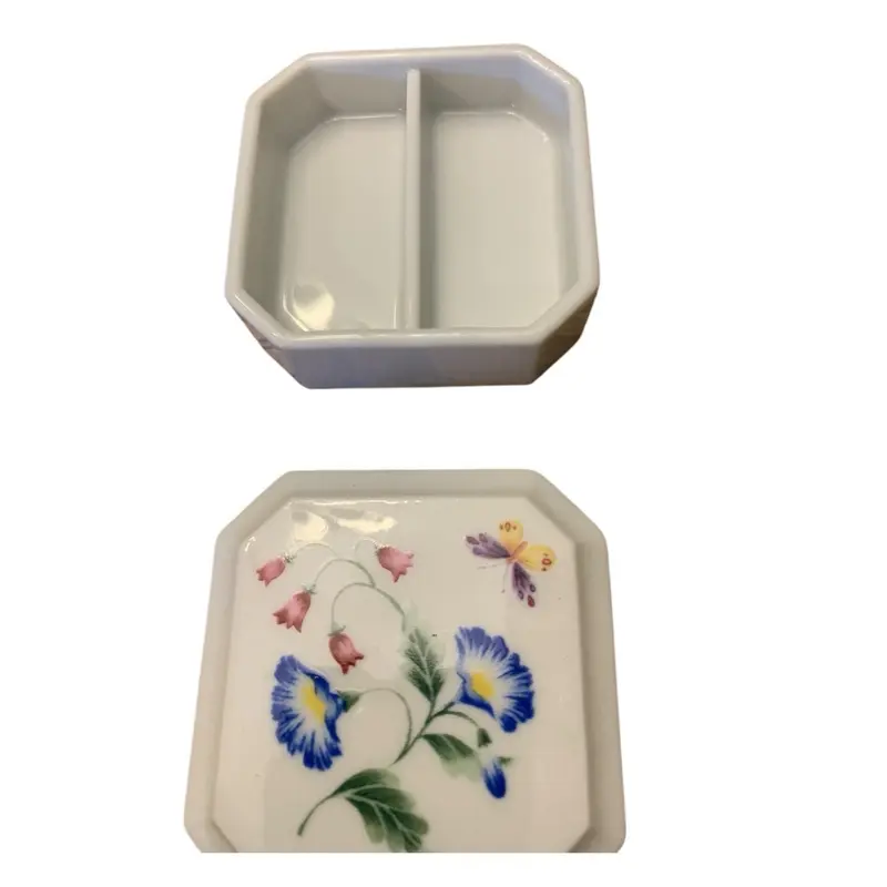 Avon Vintage Gallery Originals Porcelain Jewlery Watch Tray & Covered Box with Floral Design and Butterfly Motif