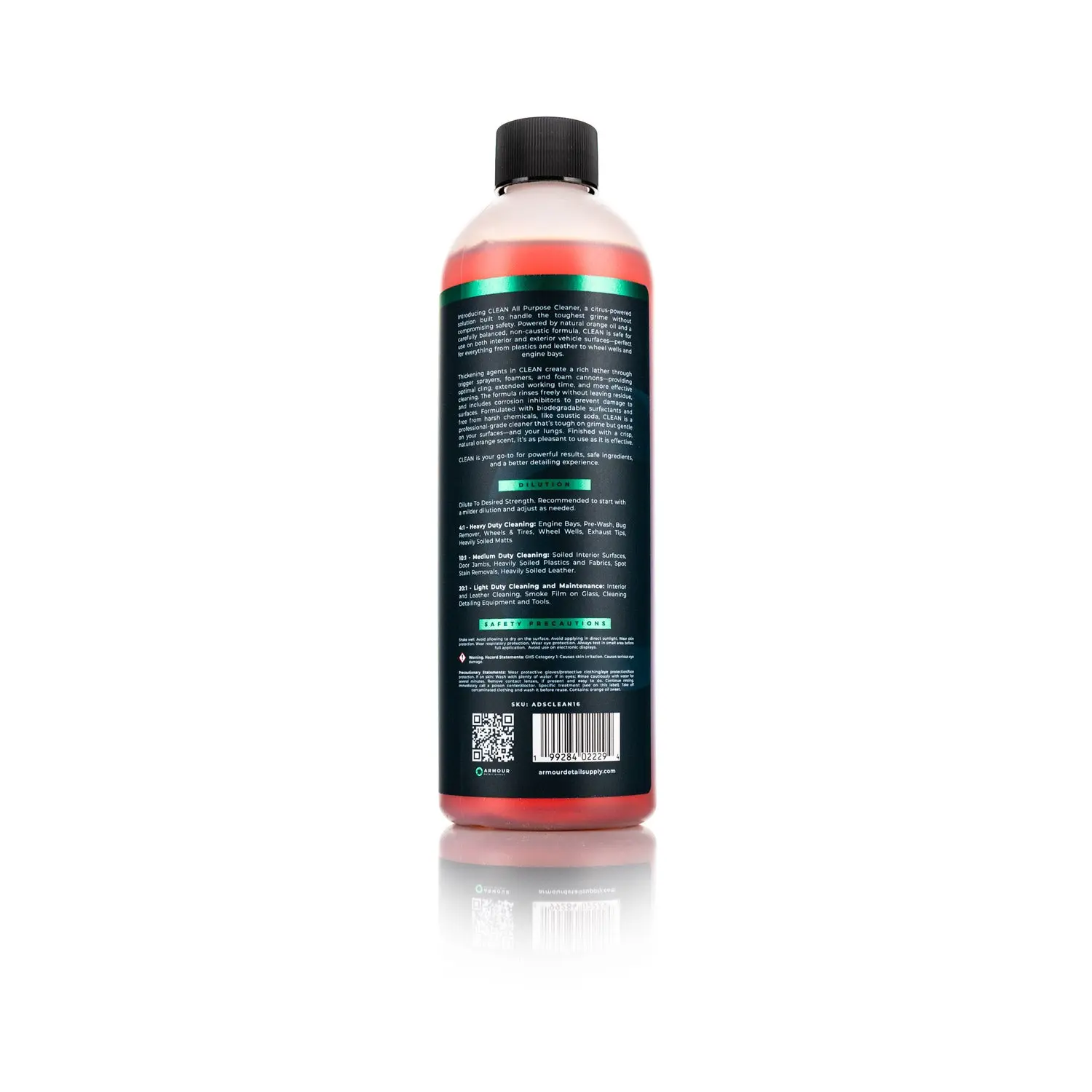 ADS CLEAN is the kind of all purpose cleaner that earns a permanent spot on your detailing cart. Built around natural citrus power and a non-caustic formula, CLEAN breaks down heavy dirt, grease, and grime while staying safe for use on virtually any surface—inside and out.