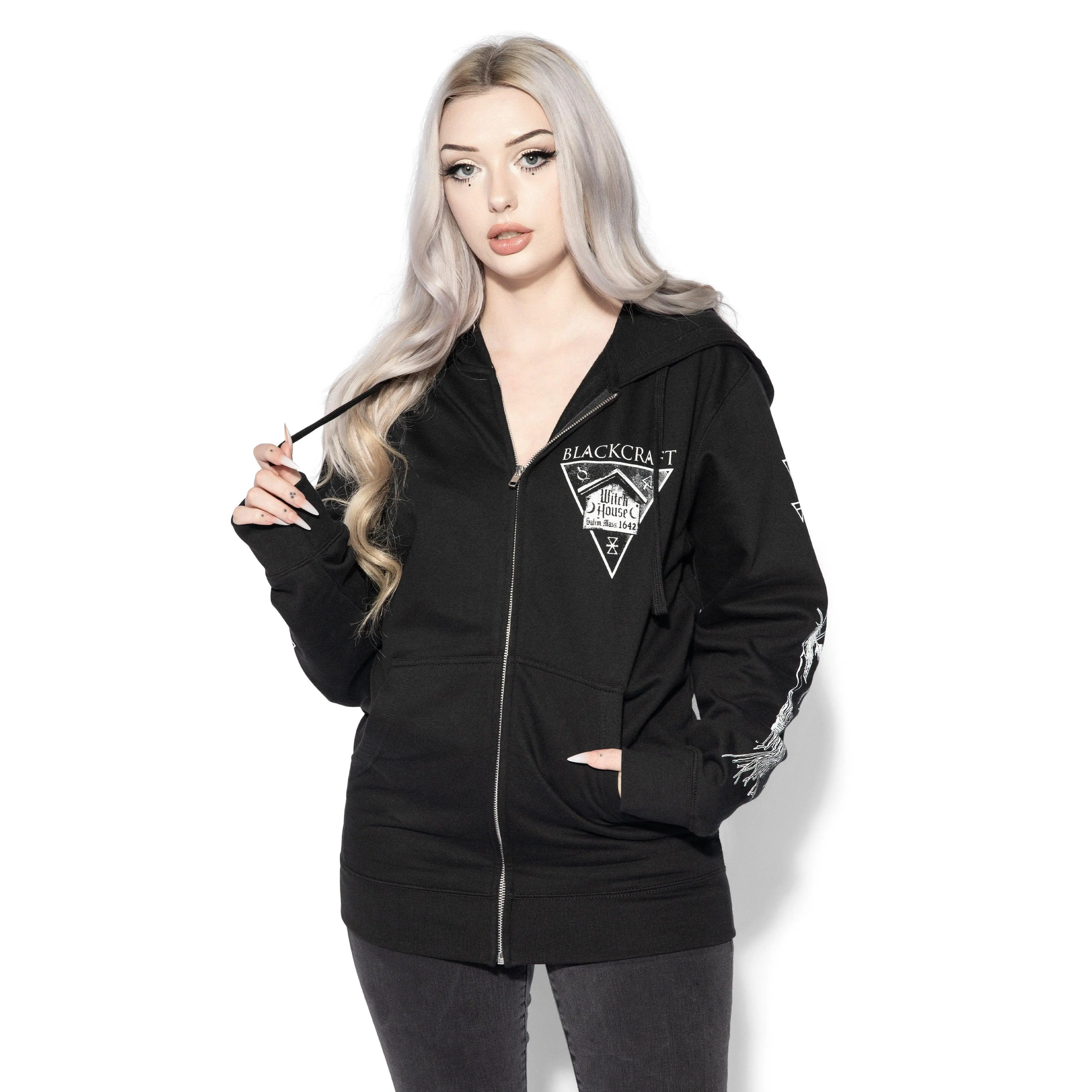 This classic fit zip-up hoodie is crafted from a blend of 80% cotton and 20% polyester, with a cozy brushed fleece interior and a soft yet durable finish. Featuring custom artwork across the front, back, and sleeves.