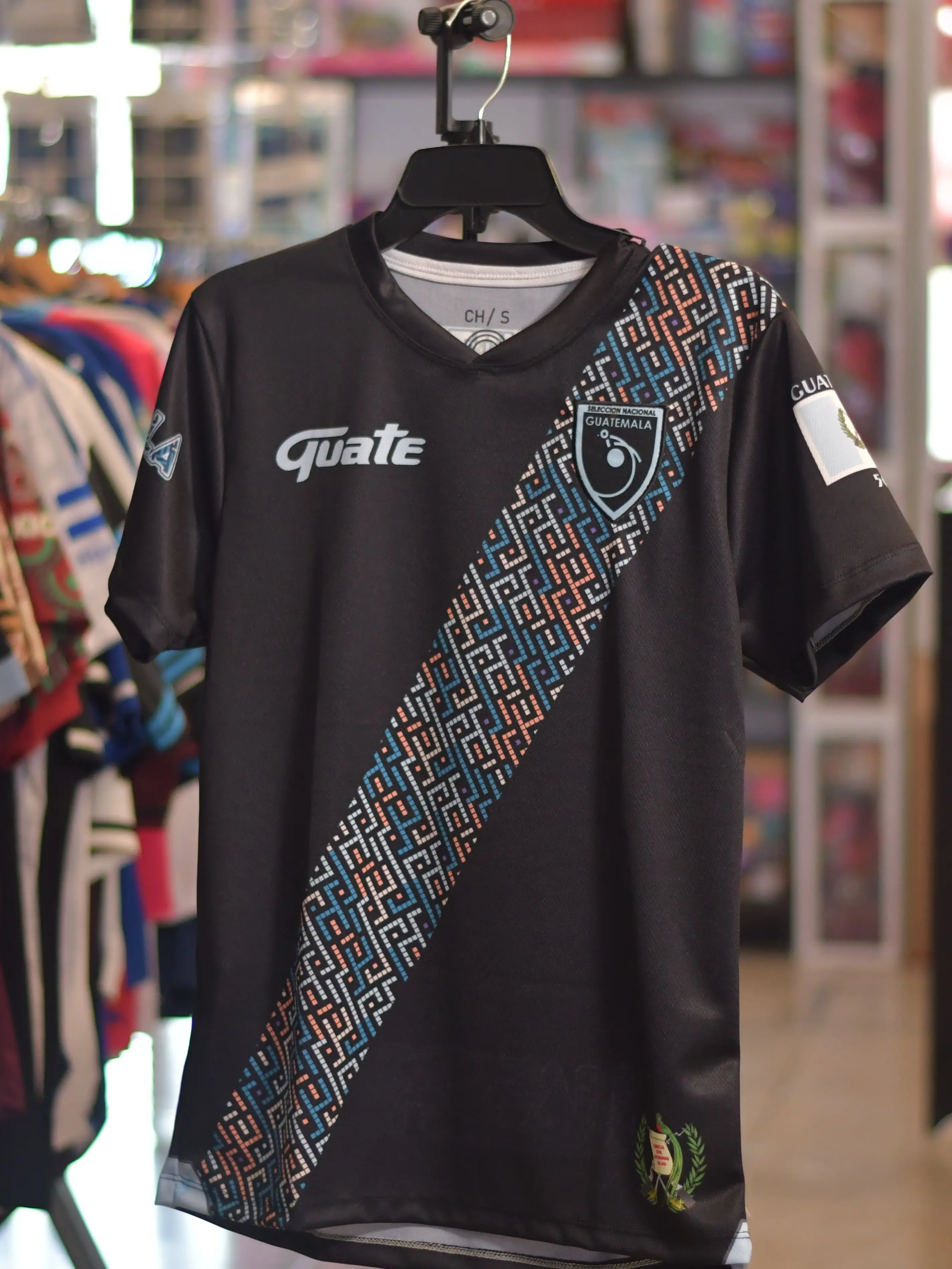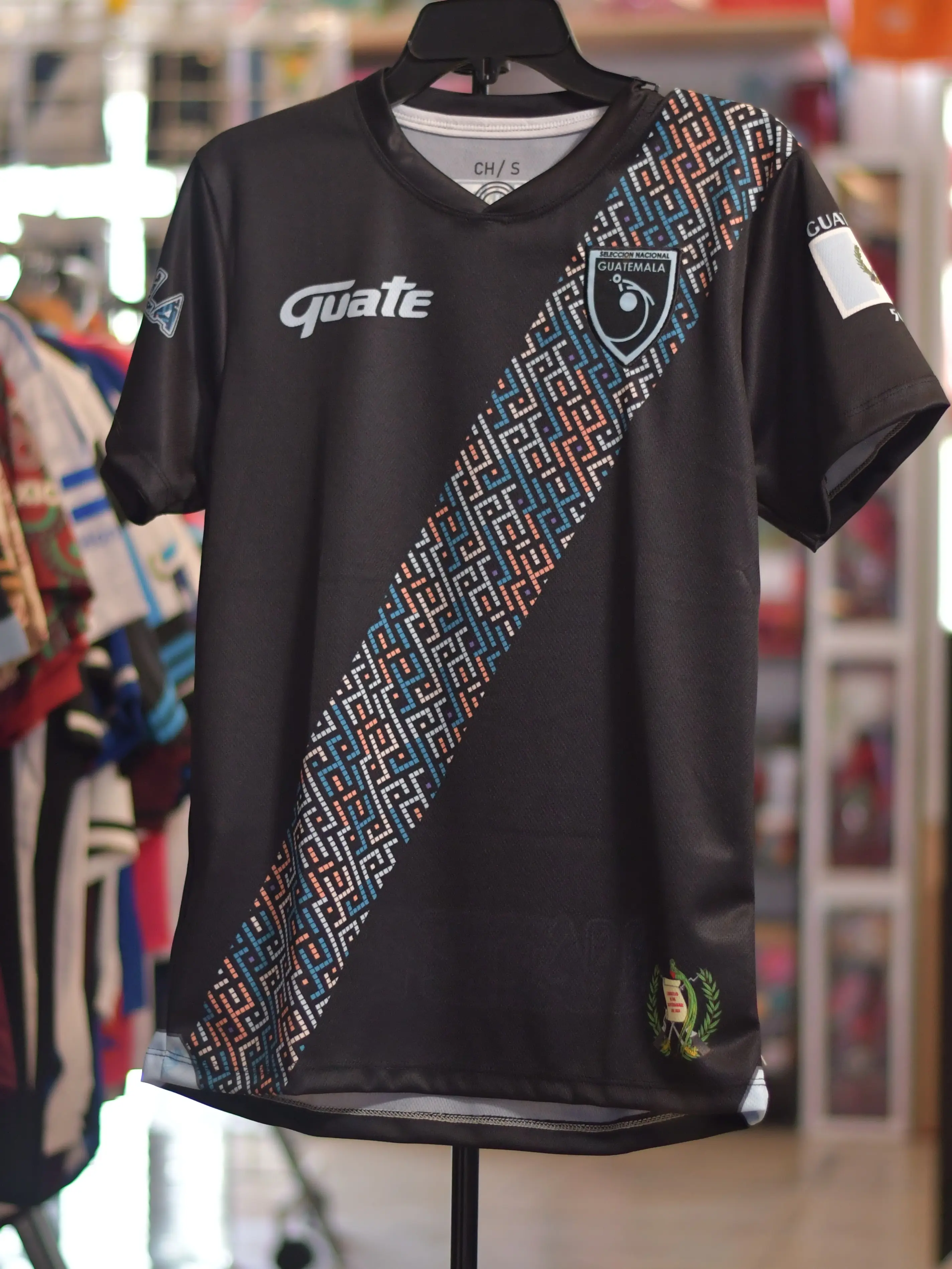 Discover the Guatemala Camisola de Guatemala Negra 2025 Short Sleeve Soccer Jersey. This jersey features unique geometric patterns, making it a standout choice for soccer enthusiasts. The design is bold and eye-catching, perfect for showing your team spirit.