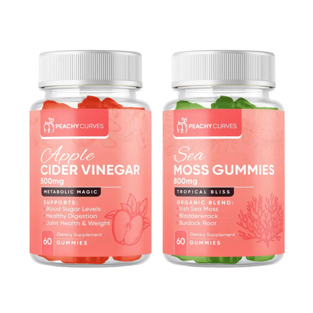 Unlock a holistic approach to wellness with our exclusive bundle of Apple Cider Vinegar and Sea Moss Gummies. This powerful combination is designed to boost your overall health and elevate your beauty regimen naturally.