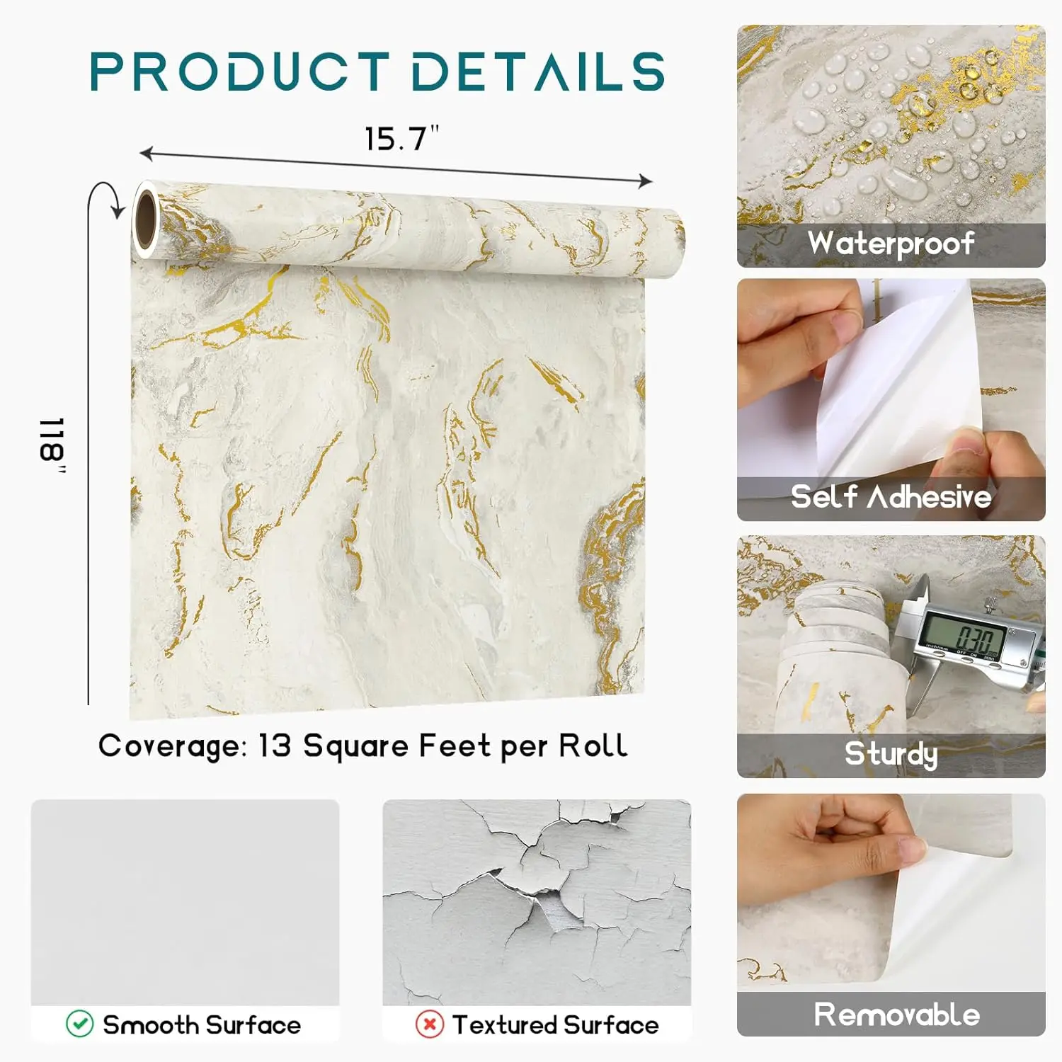 ✨ 15.7" x 118" Beige Gold Marble Contact Paper – Elevate your countertops, kitchen, bathroom, and tables with this stylish contact paper. Its beige gold marble design adds a touch of sophistication to any room. Perfect for quick updates without the hassle of traditional painting.
